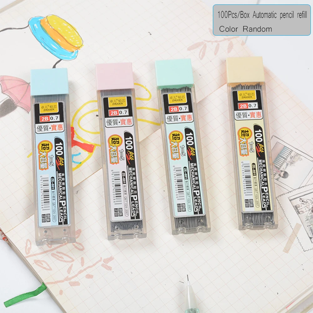 Новый 100 шт./кор. 0,5/0,7 мм графитовый привести 2B механический со стирающимися чернилами Гладкий Карандаш заменить графитный карандаш Заправка для рисования канцелярские принадлежности