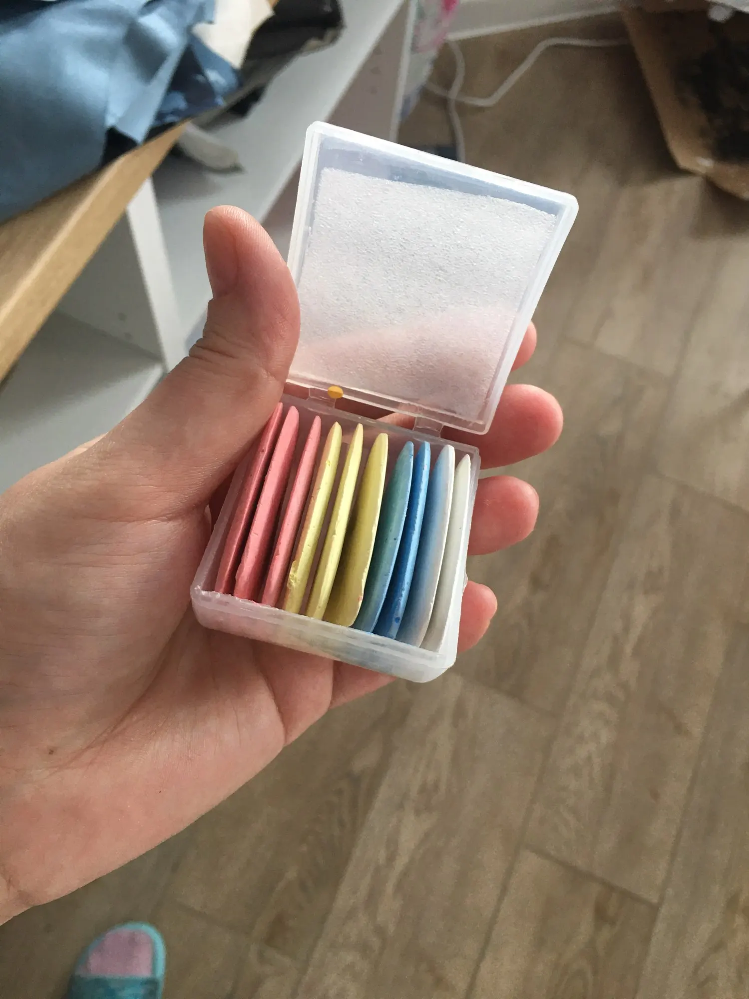Заказ шёл долго-2,5 месяца в Волгоградскую область,но всё таки пришёл.Мелки в пластиковой коробочке, очень тонкие и хрупкие,но дошли целыми,внутри были переложены пенопластовыми шариками- очень удачный способ-молодцы.