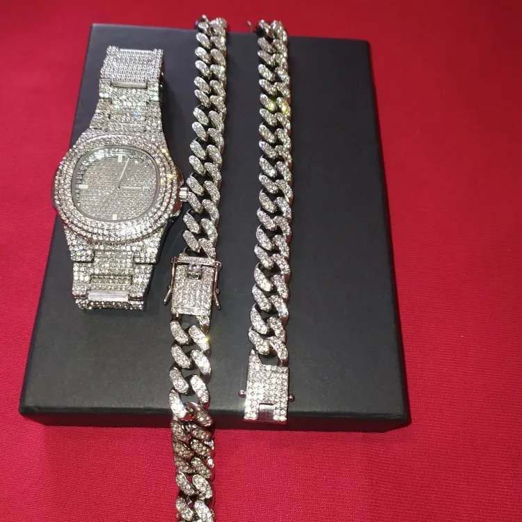 Цепочка мужская серебристая, ожерелье, часы, браслет в стиле хип-хоп МАЙАМИ
