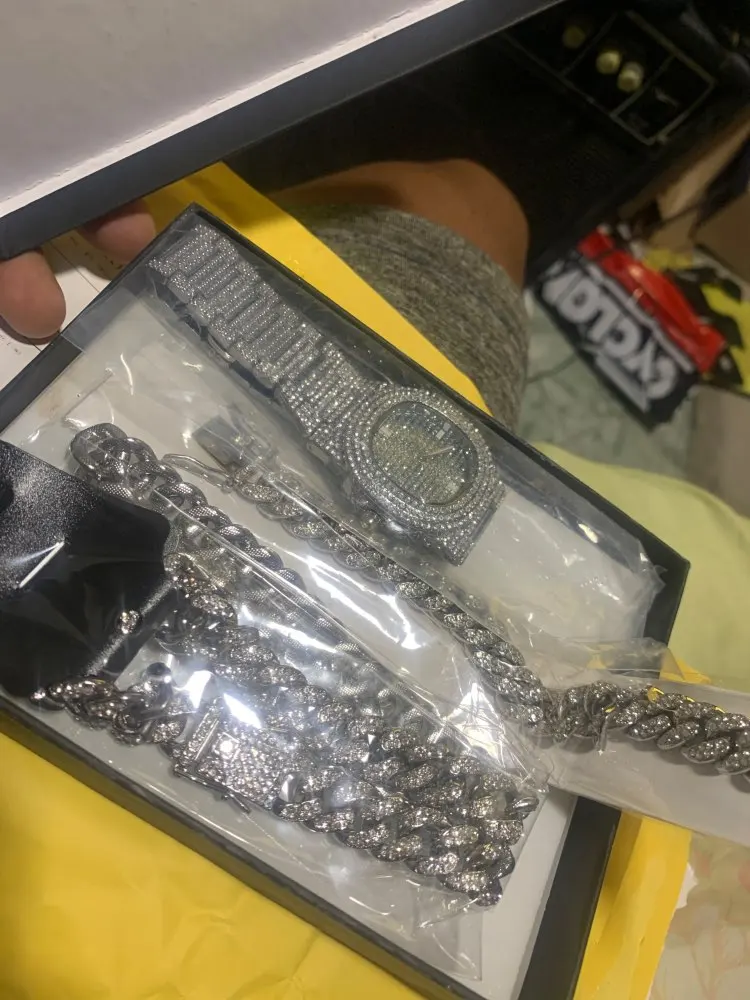 С цепью всё хорошо, но вот с часами так себе. На них ржавчина так ещё маркёром линия, которая не смывается