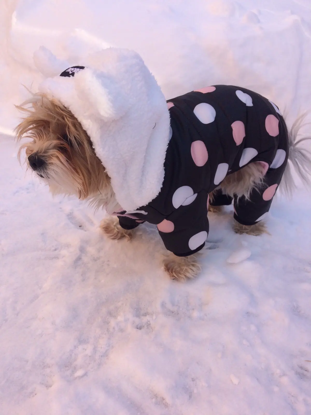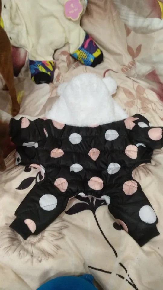 Мягкая теплая одежда в горошек для собак, ветрозащитные куртки, флисовое пальто с капюшоном, комбинезон для собак, Прямая поставка