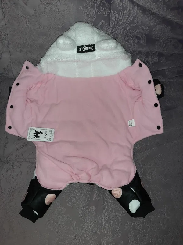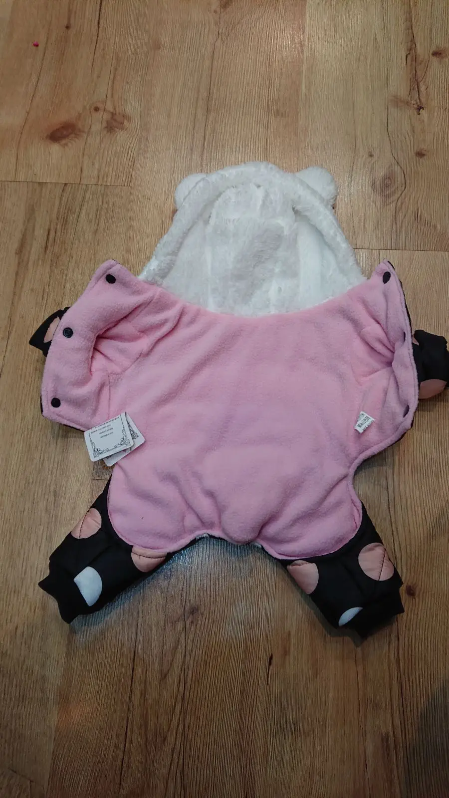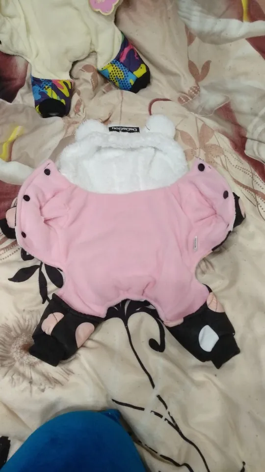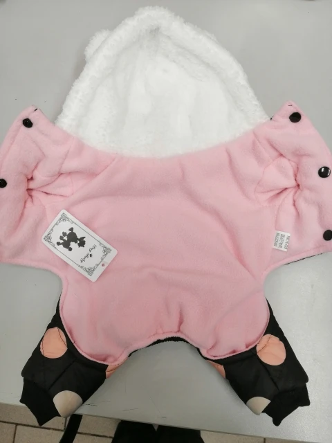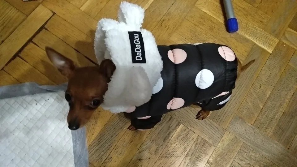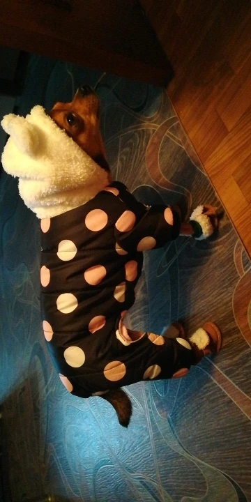 Комбезик классный, мягкий, нитки не торчат. Брала размер S на померанского шпица, немоого сковывает движение, из- за того что лапки короткие, а так - круто.