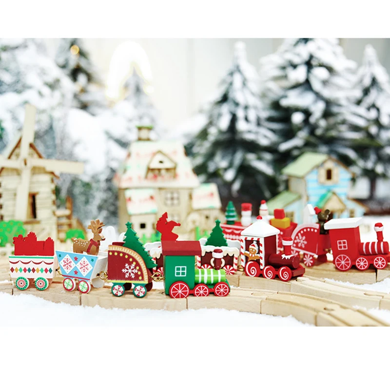 2019 Мини Деревянный Рождественский поезд украшения подарок Рождественский поезд наборы деревянный поезд модель автомобиля игрушки новый год Рождество для детей