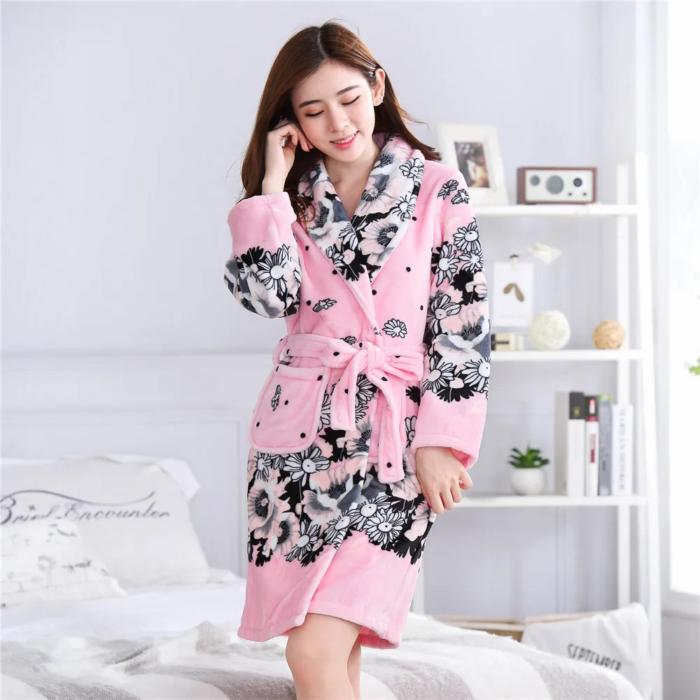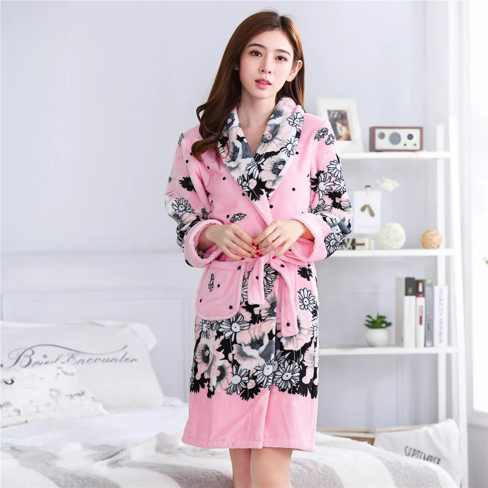 Женский фланелевый банный халат с цветочным рисунком, халат-кимоно, плотный теплый банный халат, домашняя одежда, банный халат из кораллового флиса