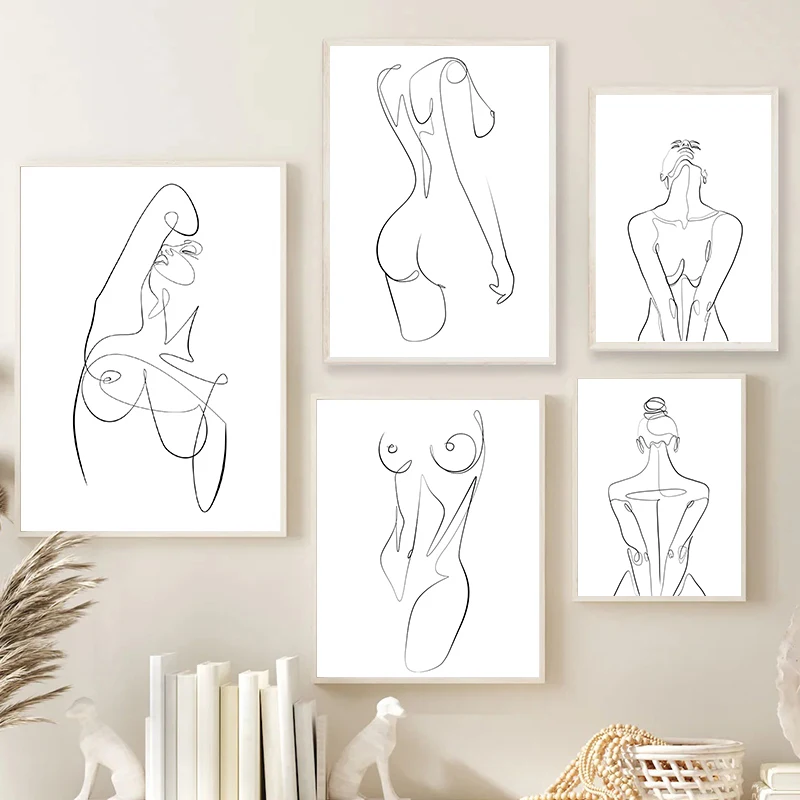 Абстрактная картина с обнаженным телом, одна линия, картина, женская обнаженная женщина, Эротическая Настенная картина, холст, украшение для спальни