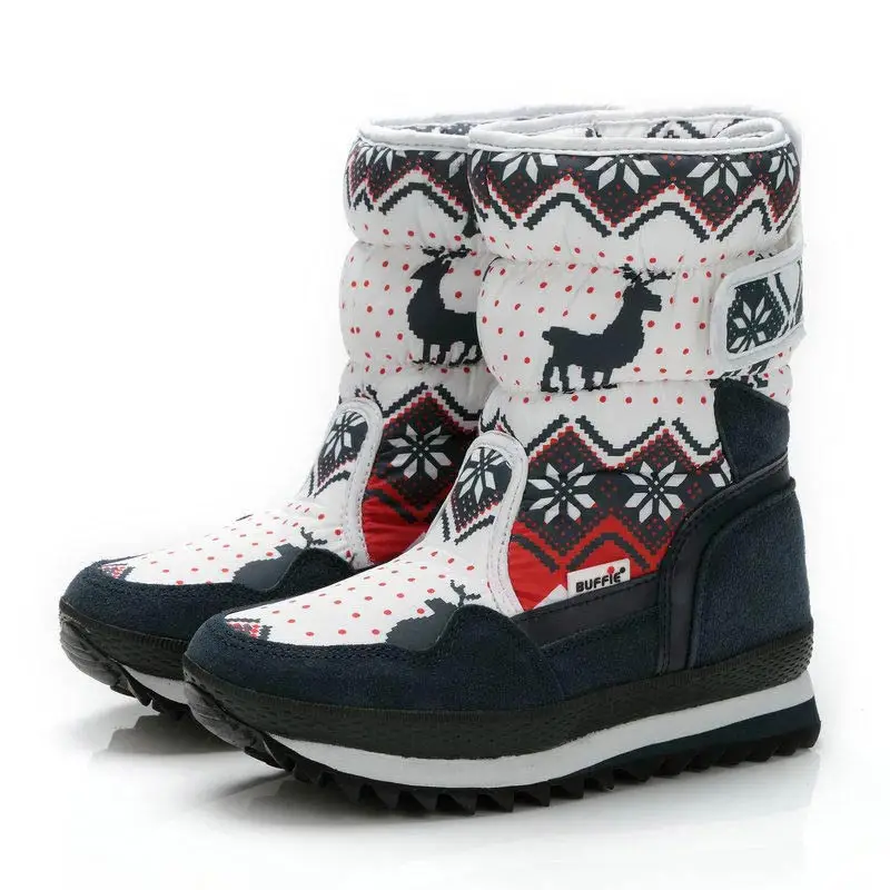 Зимняя обувь на платформе, женские ботинки 2022, теплые шерстяные Водонепроницаемые зимние ботинки до середины икры с принтом, женская обувь, женские ботинки