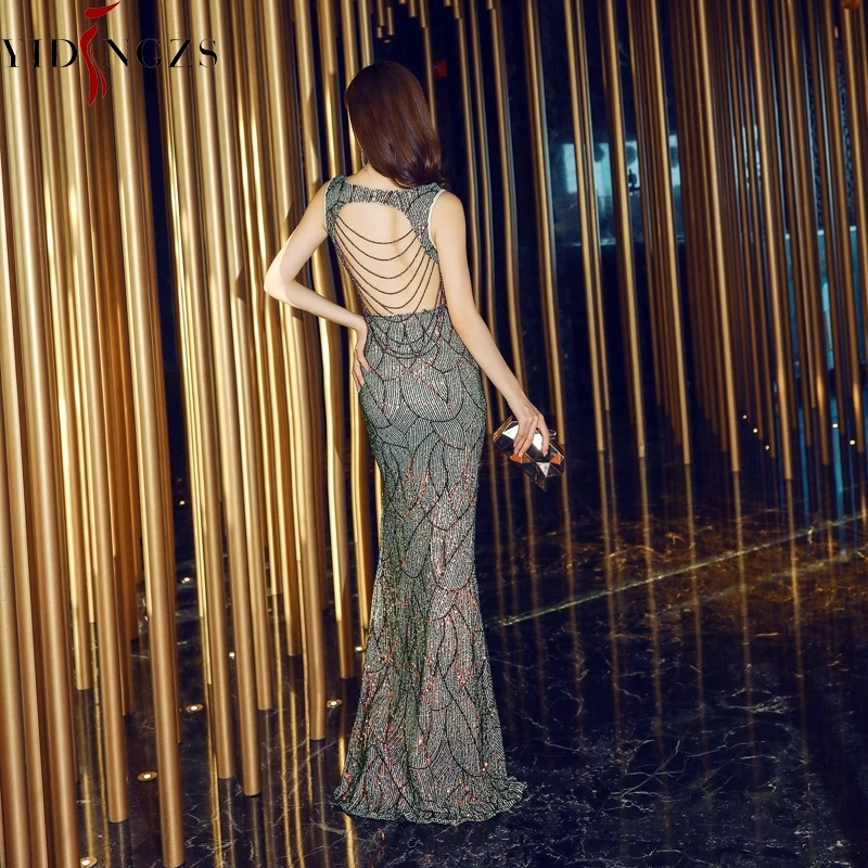 YIDINGZS сексуальное вечернее платье с блестками, женское длинное вечернее платье с V-образным вырезом и открытой спиной, YD16536