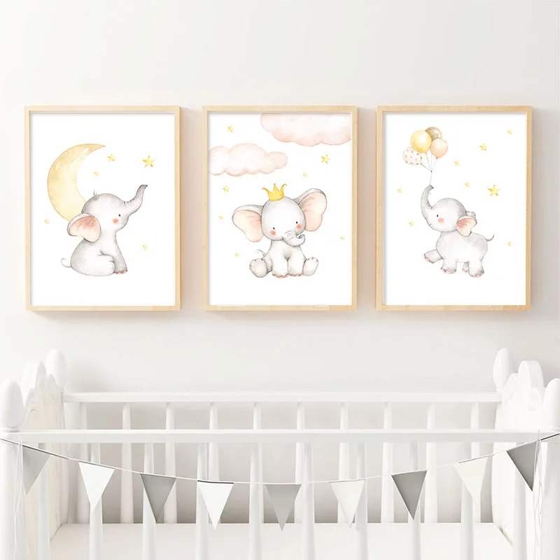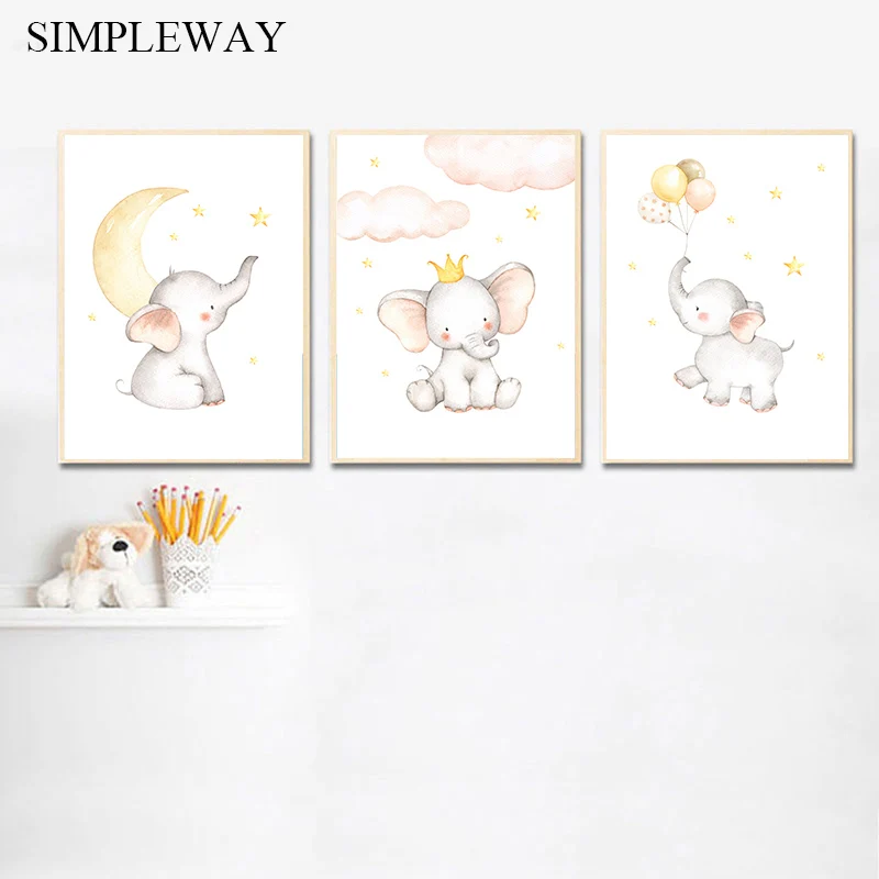 Милый Постер для детской комнаты с животными, слон, лев, леопард, м...