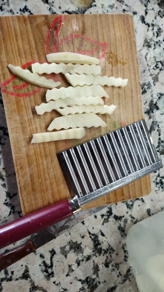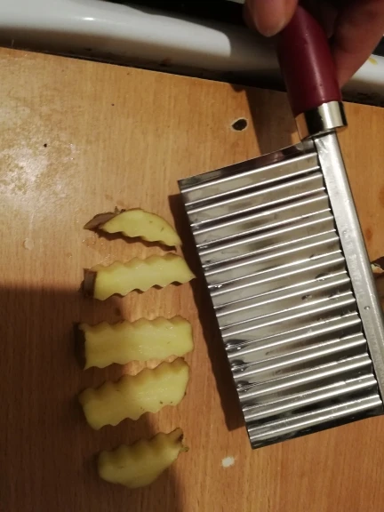 Нарезать картофель гладко, и таким образом, он оставляет их гораздо более хрустящими, я буду покупать его снова без колебаний