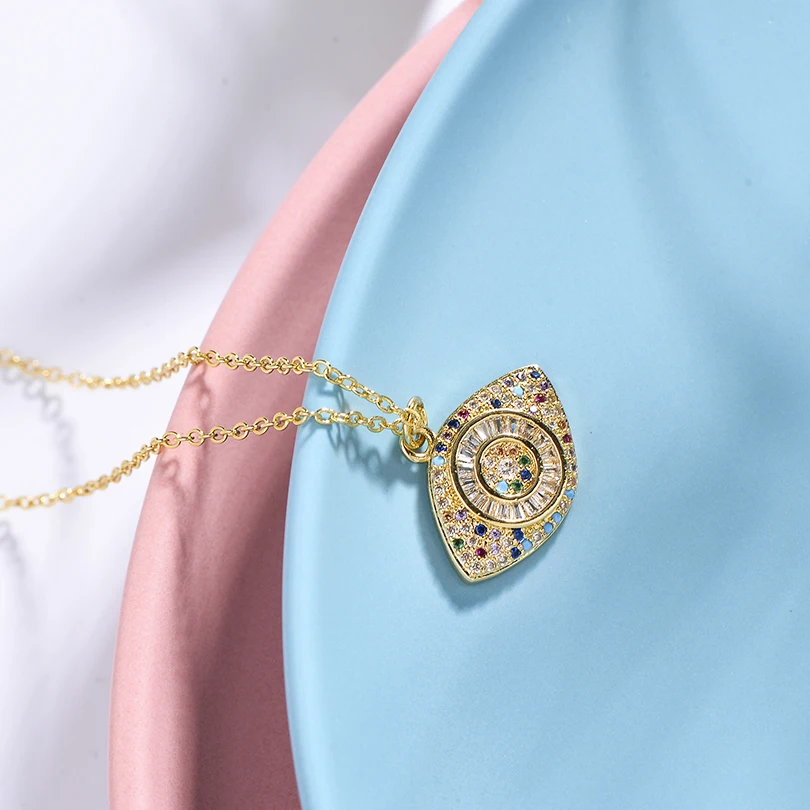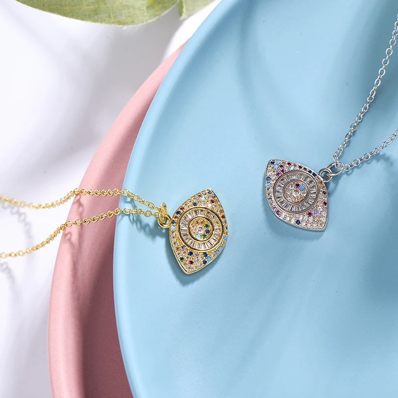Pipitree разноцветное CZ ювелирное ожерелье сглаза кулоны медная цепочка Золотое кубическое циркониевое хрустальное ожерелье для женщин вечерние