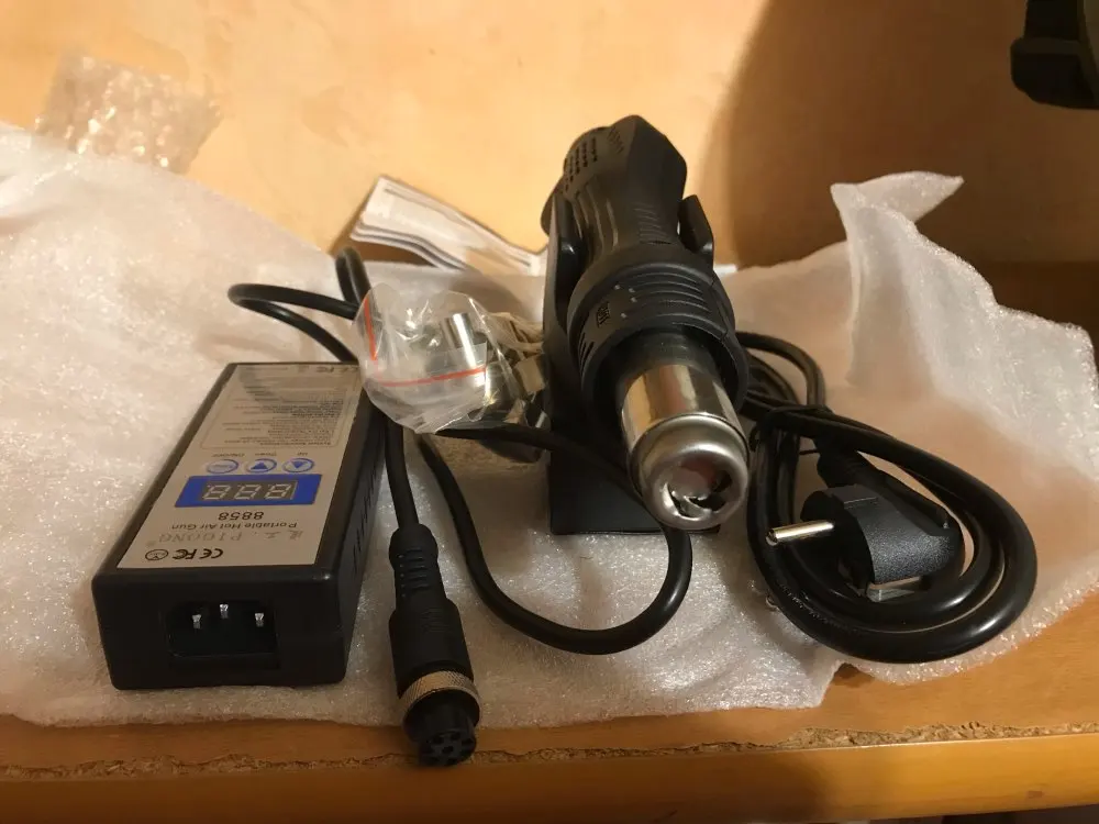Очень доволен покупкой) Проверил. Работает. Распаивал и запаивал смд и не только детальки. Все в норме. При установке на подставку, фен снижает температуру до 100 градусов и выключается. Снимаешь с подставки, набирает установленную температуру. Пришло быстро. С продавцом не общался.