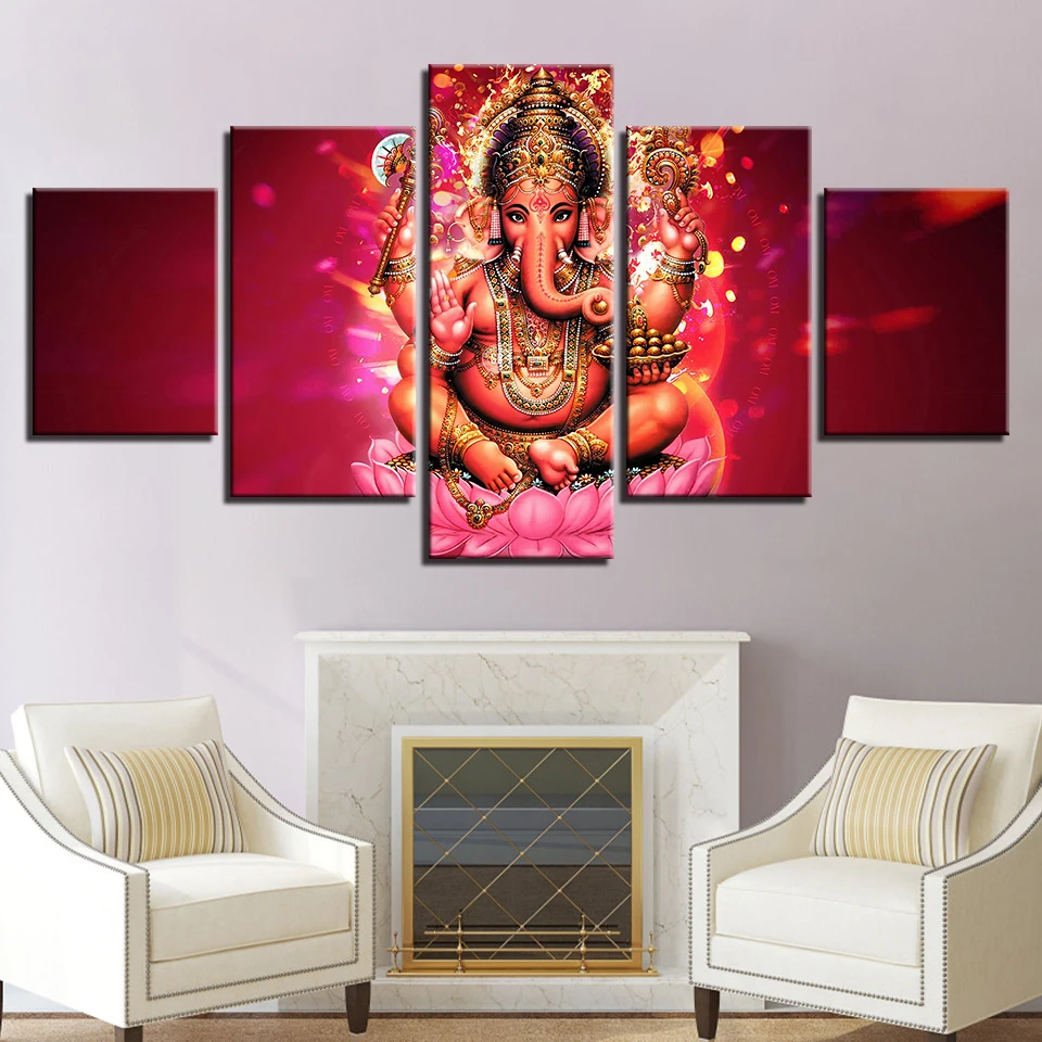 5 шт., декоративные картины на холсте, слон, Бог, лорд Ганеш