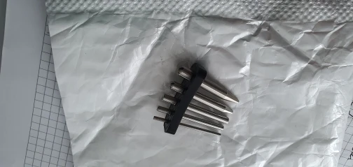 Посылка прибывает во Францию в хорошем состоянии за 17 дней. К минусам объекты действительно маленькие, я думал, что они были больше. Длина составляет около 4 см для каждого металлического стержня, поэтому короче обычного пальца. Все 5 металлических стержней хранятся в кусочке гибкого пластика domino черного цвета. Это действительно очень коротко!