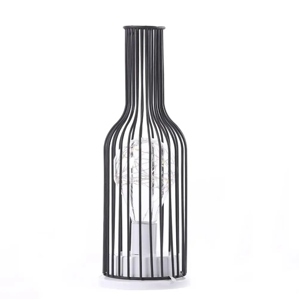 Настольная лампа в стиле ретро, железный ночсветильник с винной бутылкой и медной проволокой, креативное украшение для отеля и дома, настольная лампа на батарейках