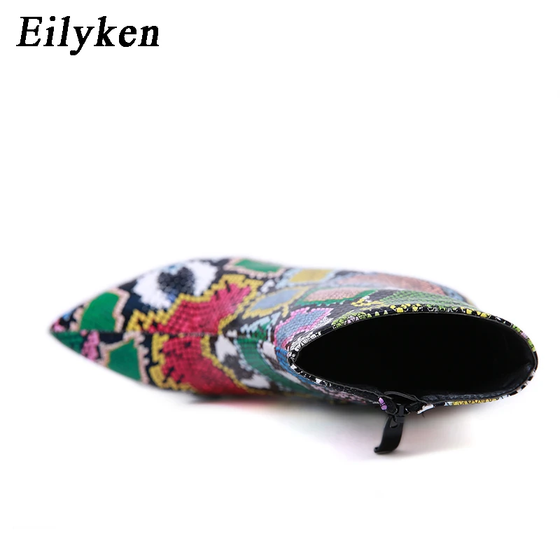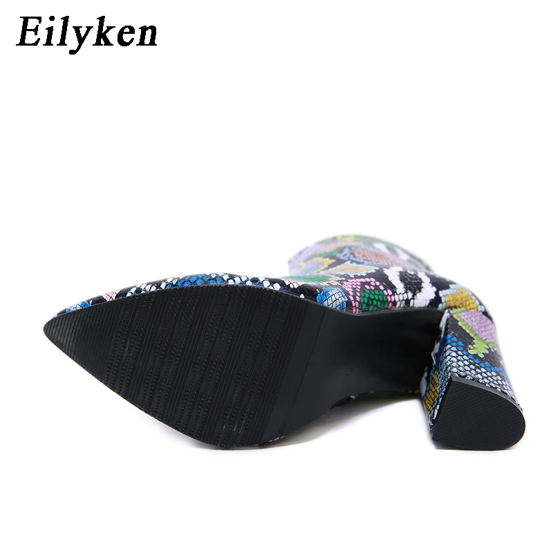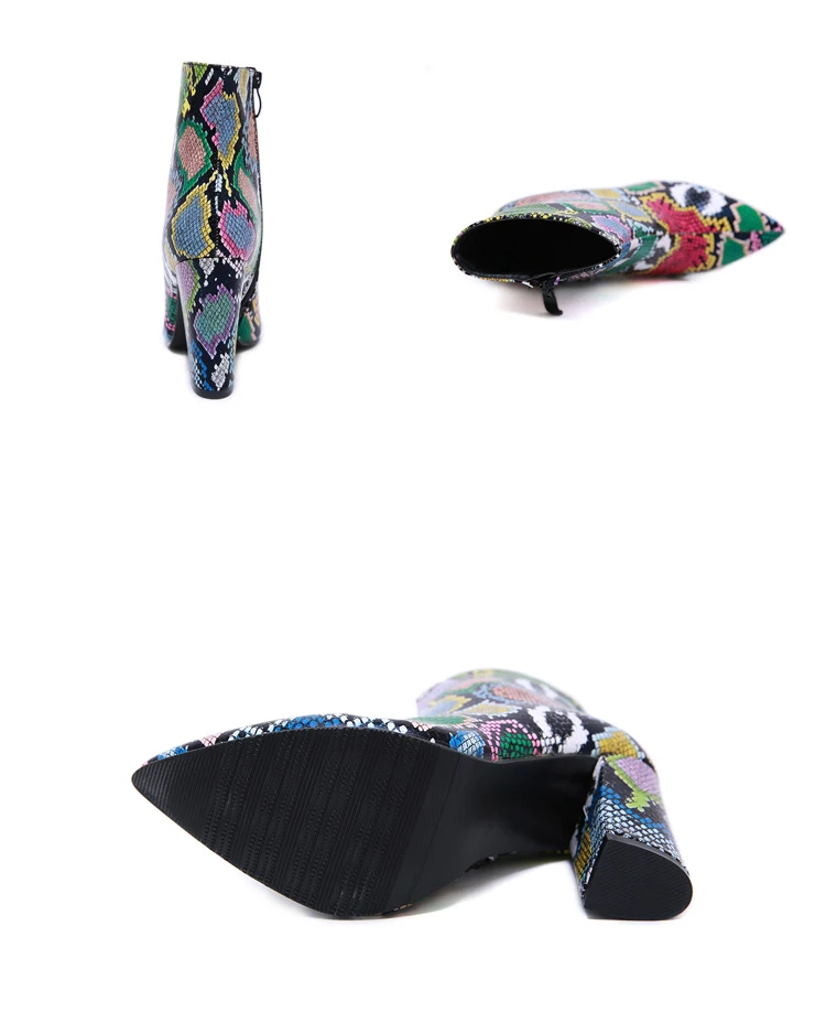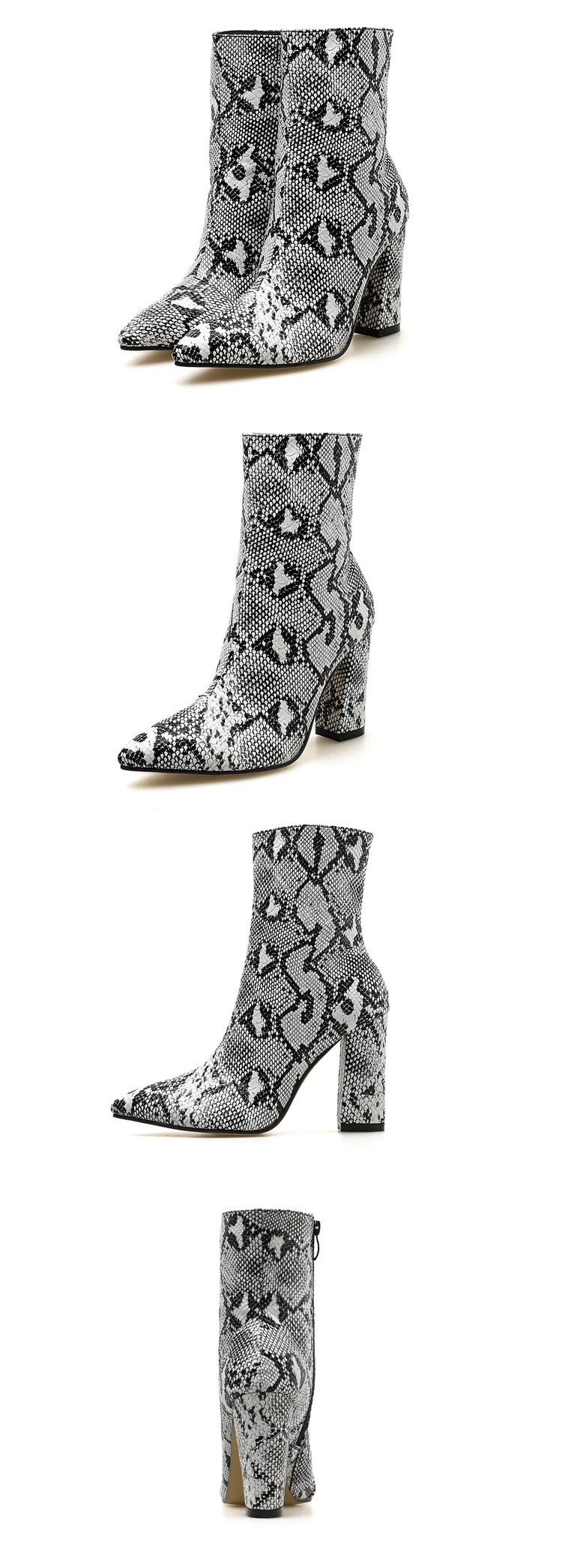 EilyKenновые модные ботинки со змеиным узором; Женские ботинки на толстом высоком каблуке; Ботильоны с острым носком на молнии; Женские повседневные зимние ботинки