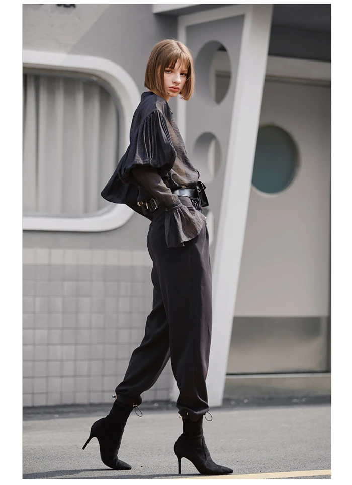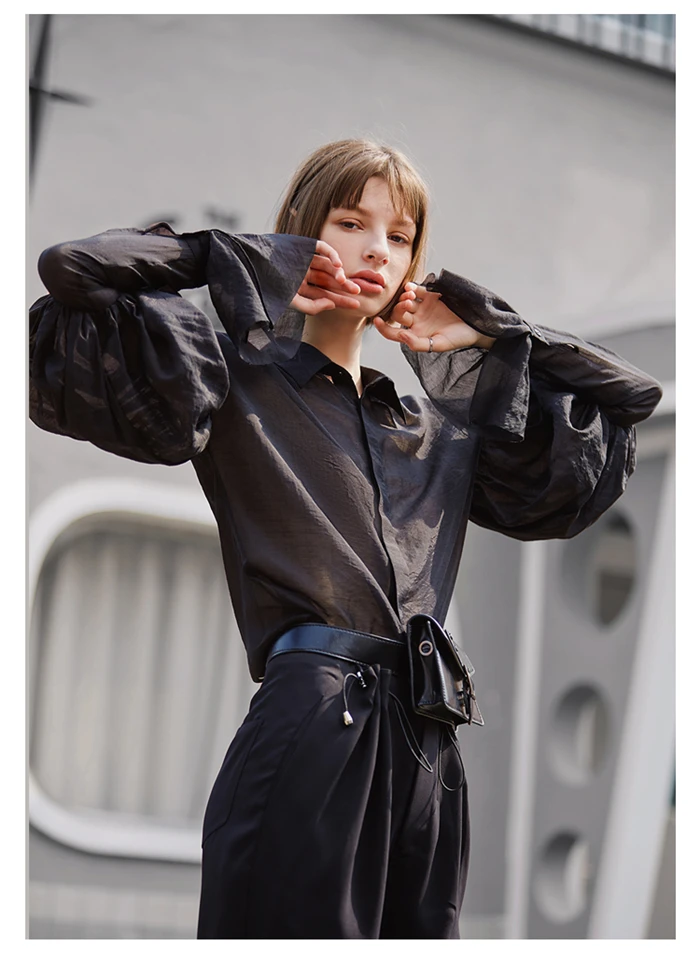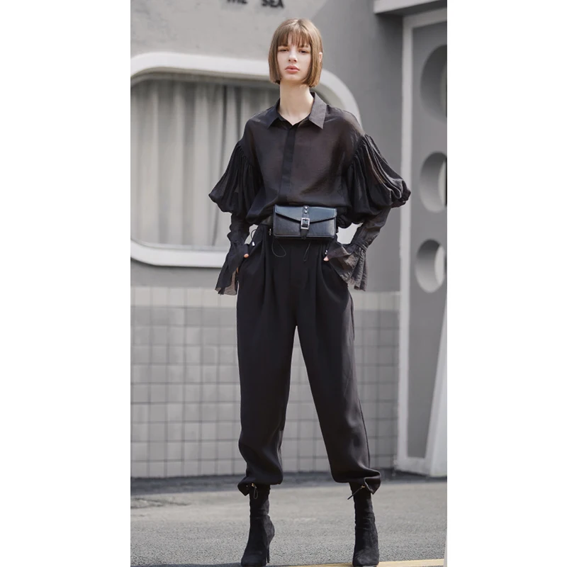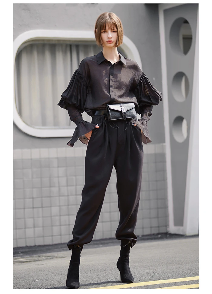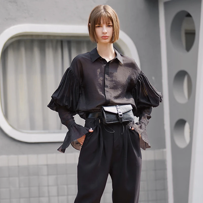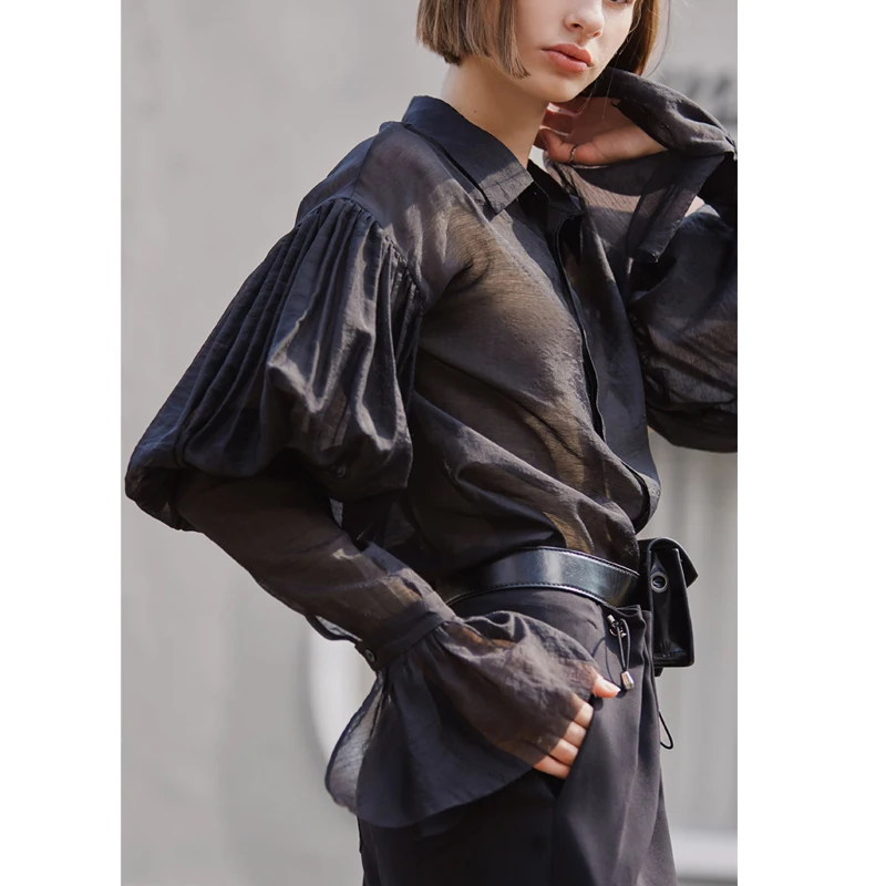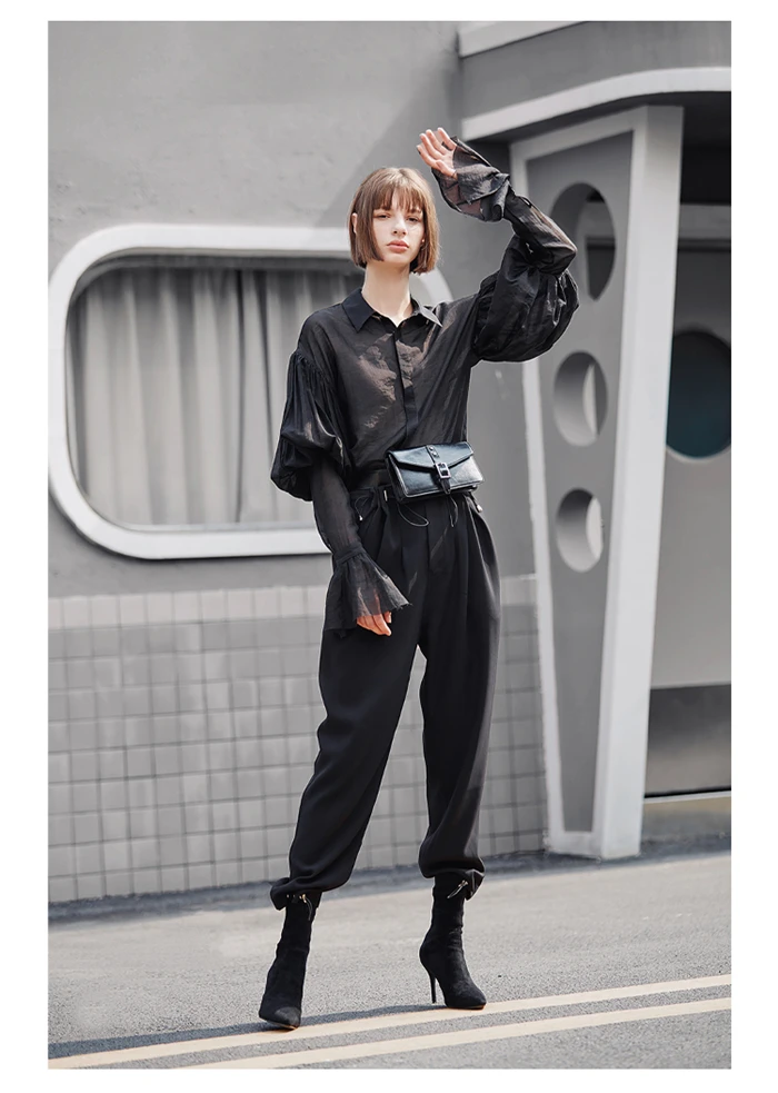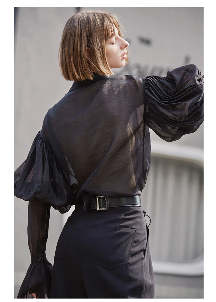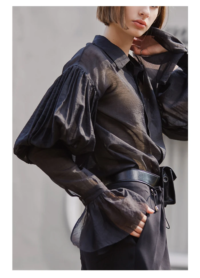 Женская блузка в стиле ретро с рукавом епископа, готические топы, свободные рубашки с оборками, 2019