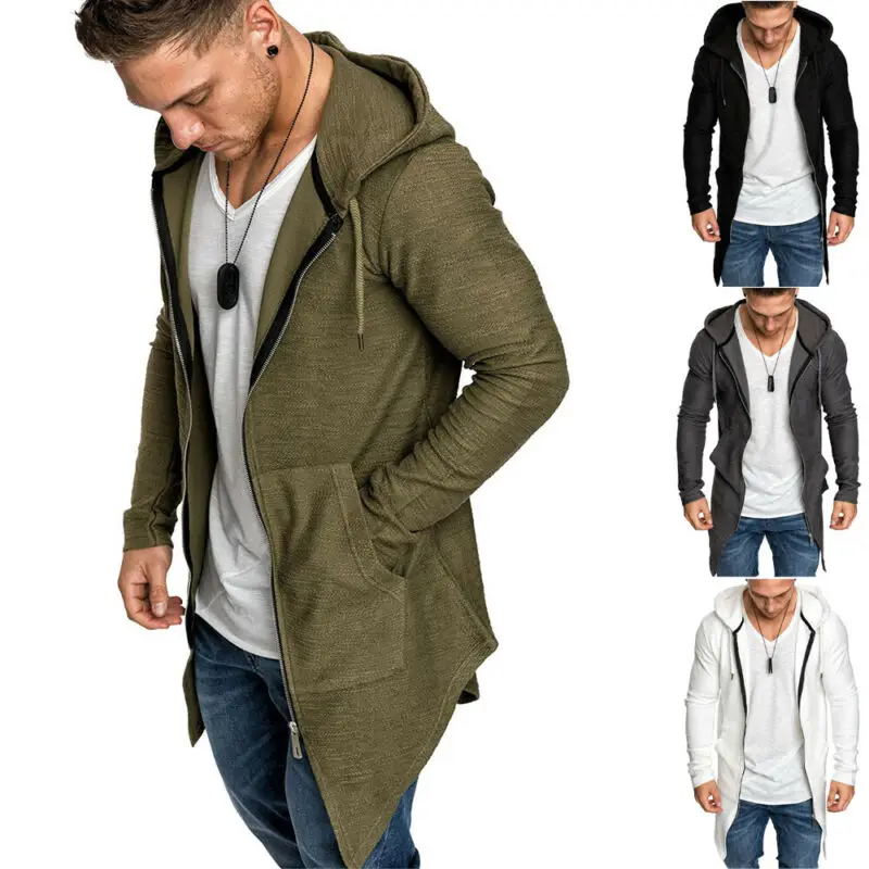 2019 Демисезонный мужские Тренч с капюшоном свободного кроя для подростков, одноцветная тонкая женская блуза ветровка мужская верхняя одежда на молнии тонкое пальто в виде хвоста Ласточки для мужчин топы