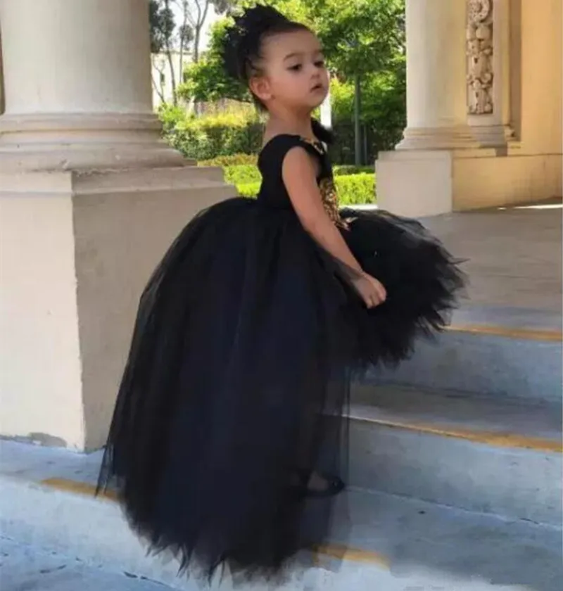 Детские черные кружевные платья с цветочным узором для девочек на с...