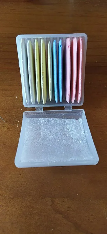 Суперские мелки, я обожаю с ними кроить. только два пришло треснутыми, но остальные целые. хорошая удобная упаковка