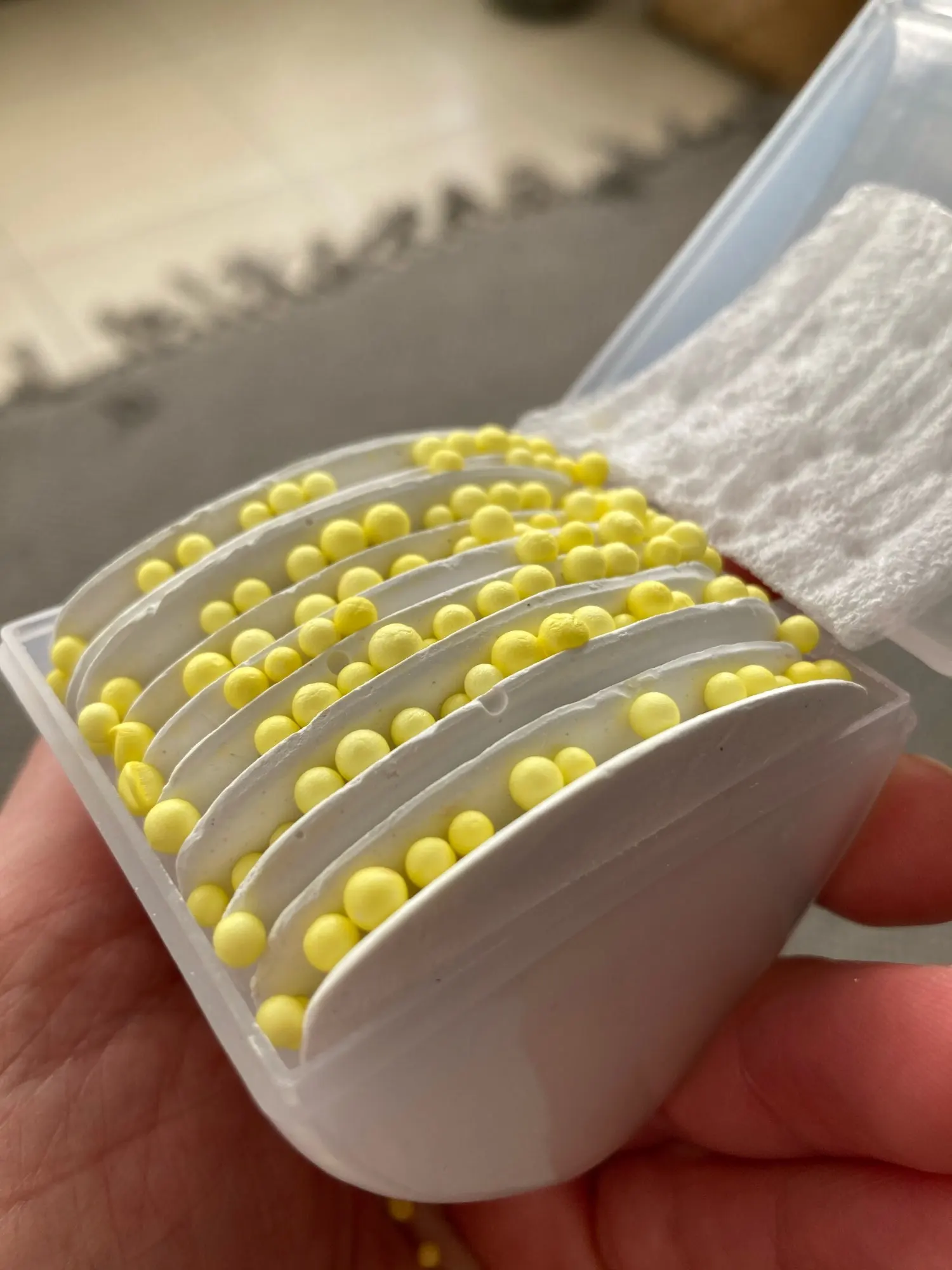 Они маленького размера, не такие, как те, которые продаются здесь, в Испании, они такие же, как сланцы, не такие как другие, которые похожи на воск. Не используйте их еще. Все подошло хорошо, не сломаясь, маленькая коробка полна шариков, так что titties не ломаются, даже если он ломается нормально, titties являются конечными!