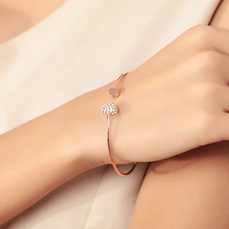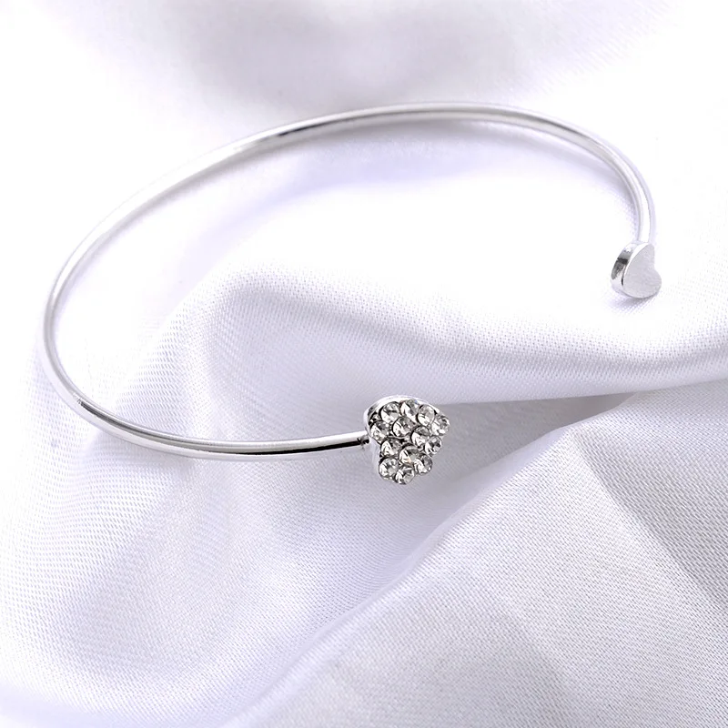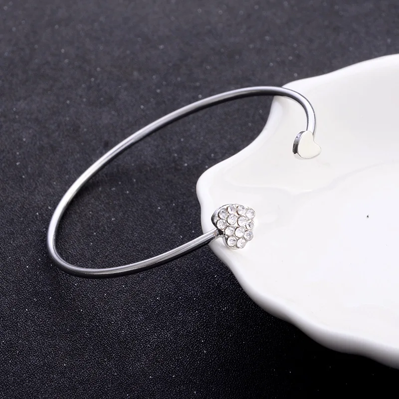 Женский незамкнутый браслет, с кристаллами в форме сердца, 2021