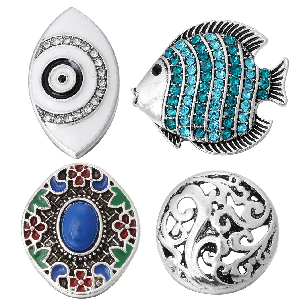 5 шт.лот новые винтажные 18 мм Кнопки бусины глаз Ретро цветок кристалл рыбы защелкивающиеся кнопки-подвески для ювелирные браслеты с защелкой для женщин