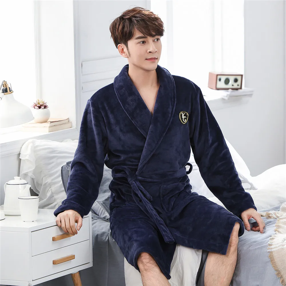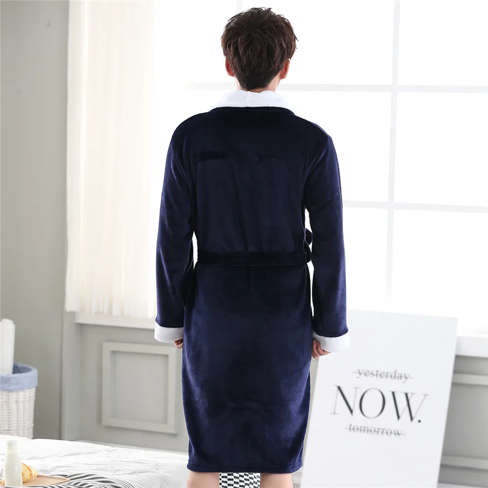 Халат мужской фланелевый, фланелевый Халат-кимоно, Повседневная теплая ночная рубашка из кораллового флиса, домашняя одежда с карманами, банный халат, пеньюар, зима
