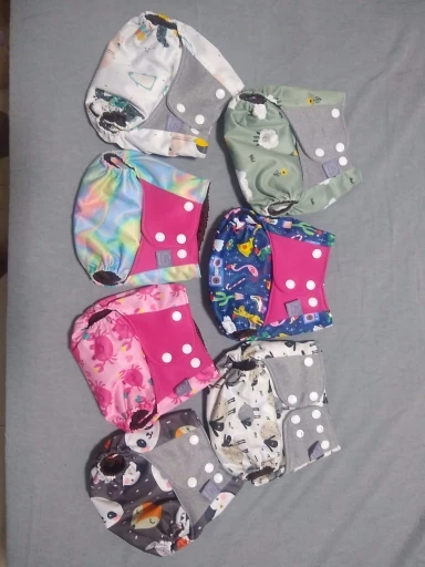 Как описано, красивые яркие цвета, отличные резинки, более толстые впитывающие, чем обычные микрофибры, Снаружи они микрополярные. Хорошее качество и прибыл немного медленнее, чем другие подгузники, но в течение 30 дней