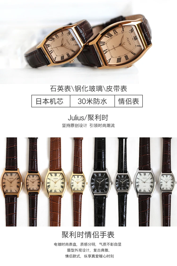 Часы наручные женские кварцевые в стиле ретро, Классические деловые в японском стиле, с ремешком из натуральной кожи, для влюбленных, подарок для влюбленных, в коробке с надписью Julius