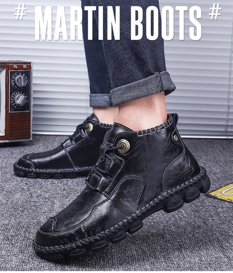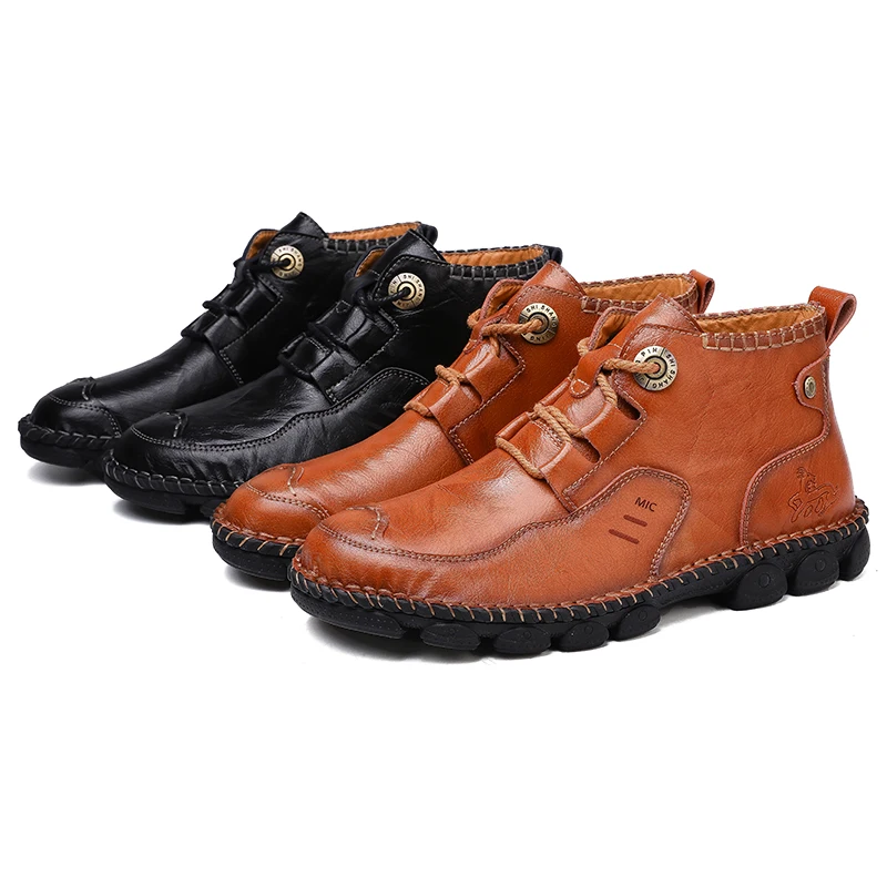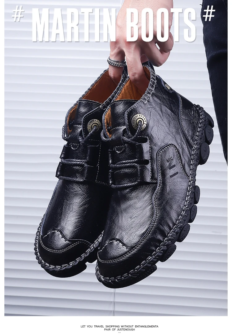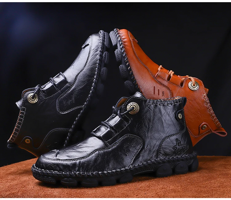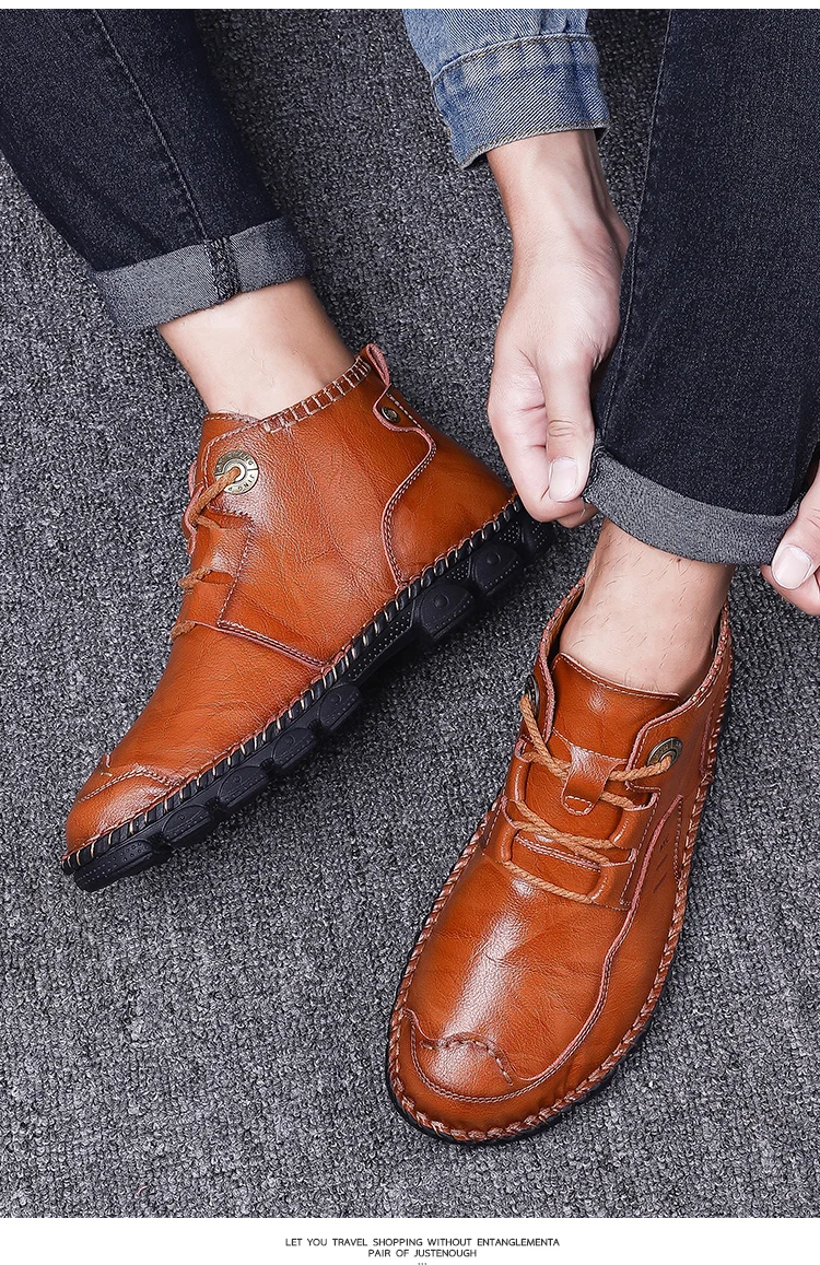 Мужские кожаные ботинки до щиколотки, Осень-зима, мужская обувь, качественная натуральная кожа, мужские винтажные британские военные ботинки, 55-48