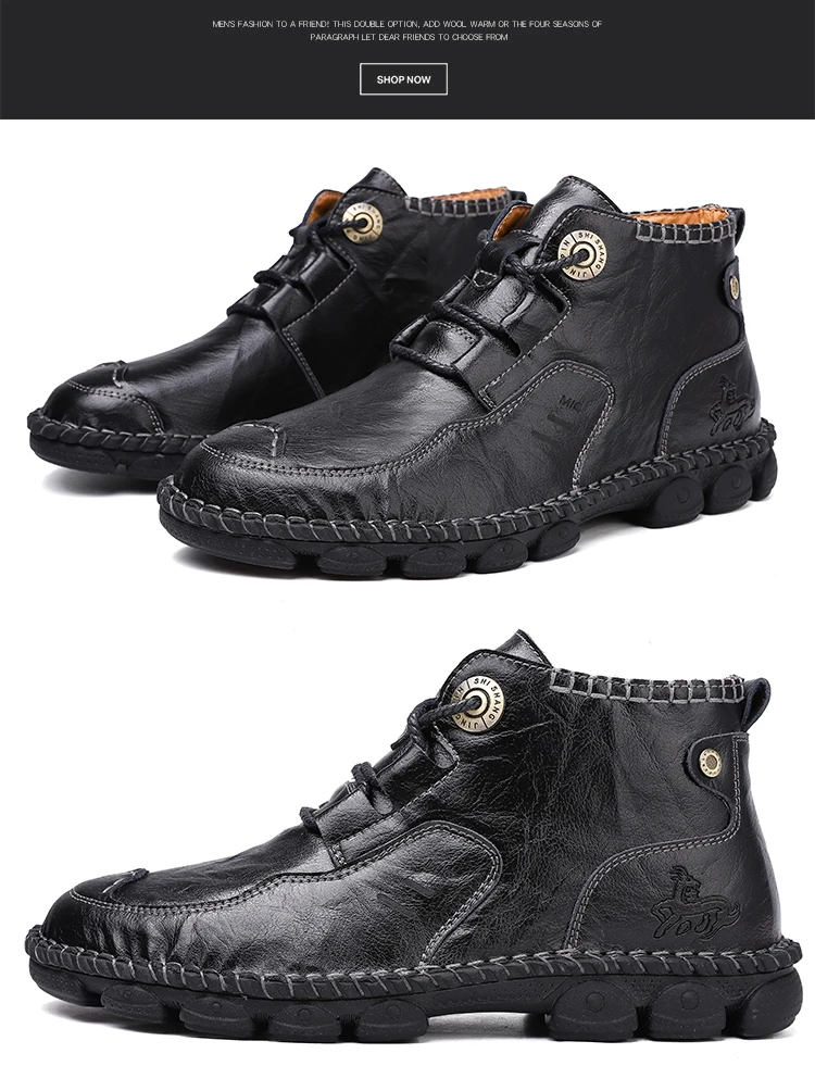 Мужские кожаные ботинки Осень-Зима водонепроницаемые Нескользящие и...