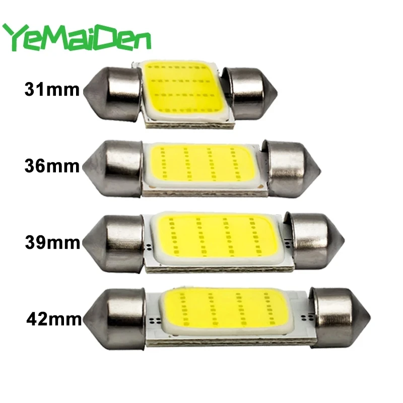 1x гирлянда, 31 мм, 36 мм, 39 мм, 41 мм, C5W, C10W, светодиодная лампа COB 12SMD, 12 В, 7000K, для салона автомобиля, верхнее освещение для чтения багажа, суперяркий белый