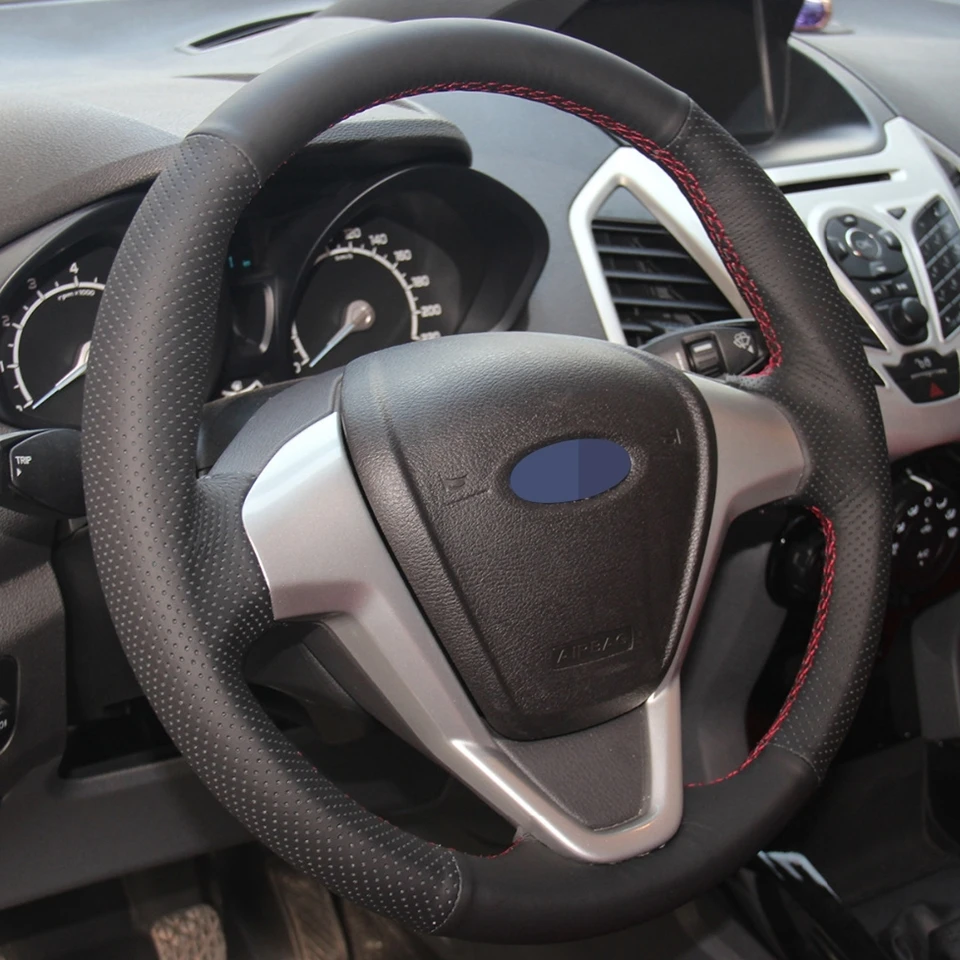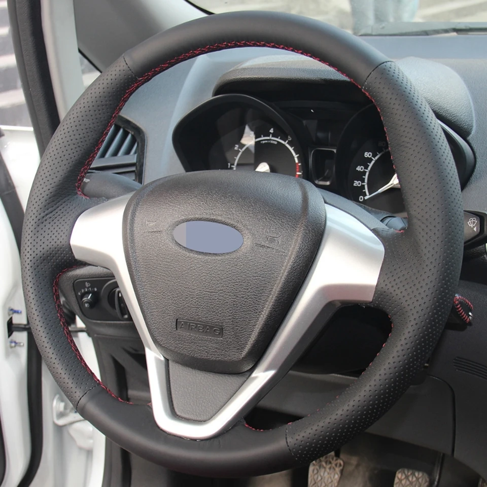 DIY ручной работы черного цвета из искусственной кожи чехол рулевого колеса автомобиля для форд фиеста 2009-2013 EcoSport 2013