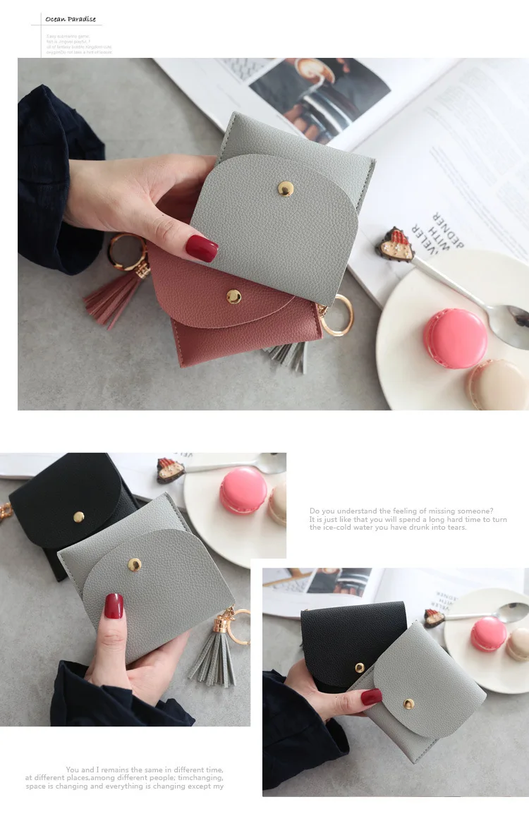 Модный женский держатель для кредитных карт с кольцом для ключей, маленькие бумажники для карт с кисточками для девочек, милый мини-кошелек для девушек