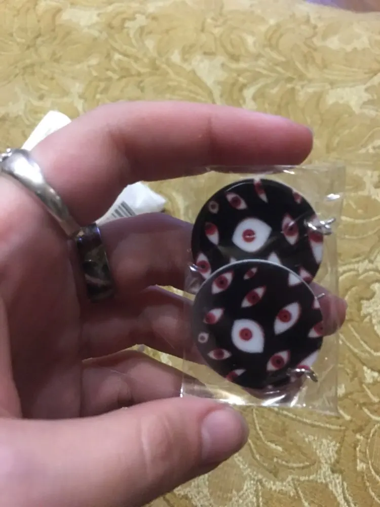глазастые серёжки, что ещё сказать. суперские, большие, ношу в школу — возмущать учителей