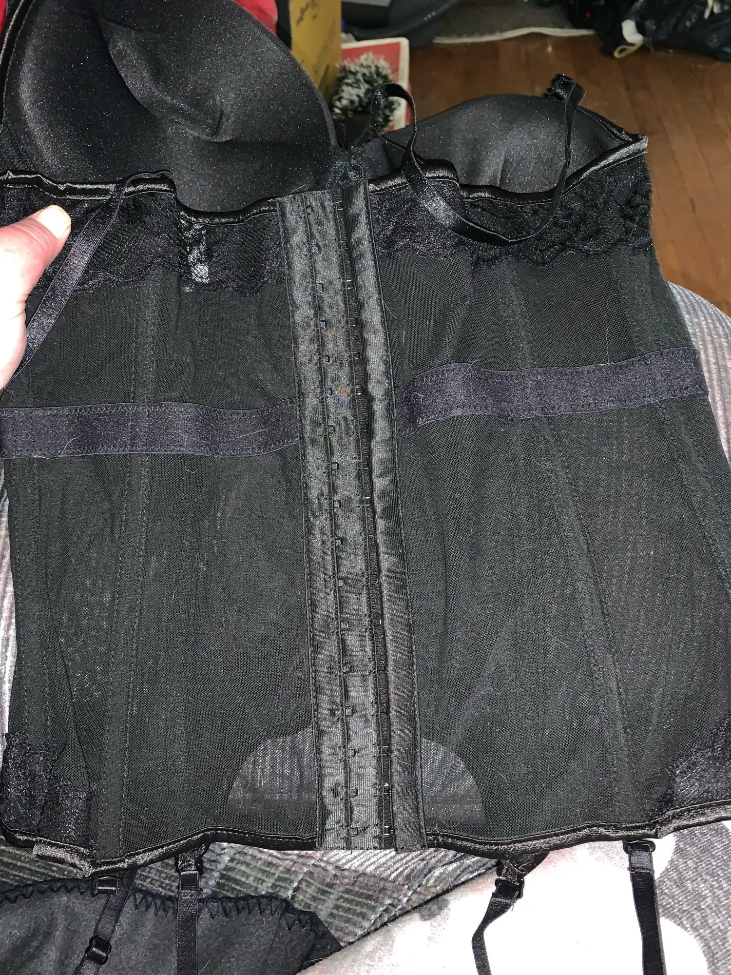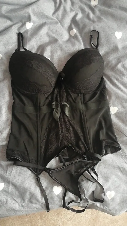 The item itself is great, but does run a little small in the bust area it also padded for push up I ordered 3XL or XXXL And it fits pretty well but because the padding it has spilling over the top of the bust area that’s really my only complaint other then the underwear (G-String\Thong) that comes with it, it’s SUPER big from front to back and stretchy there but the string around the hips/body is not very stretchy at all there for they don’t fit! Also a PLUS -the garter straps are removable as well as the bra straps! The boning is a little stiff but nothing you can’t break in :) thanks to the seller!!