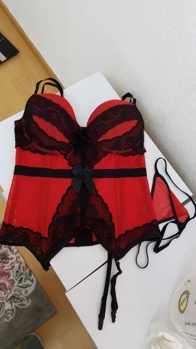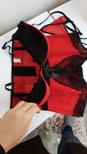 Корсет очень приличного качества. Заказала себе (как обычно бельё с алика)больше на два размера и прогадала . Наверное можно было заказывать в размер, ну или больше на один.. так как тянется материал замечательно. Сделан набор тоже качественное. Цвет яркий, красивый . запаха никакого нет. Нитки не торчат, без брака и не прошитых швов . Всё как должно быть