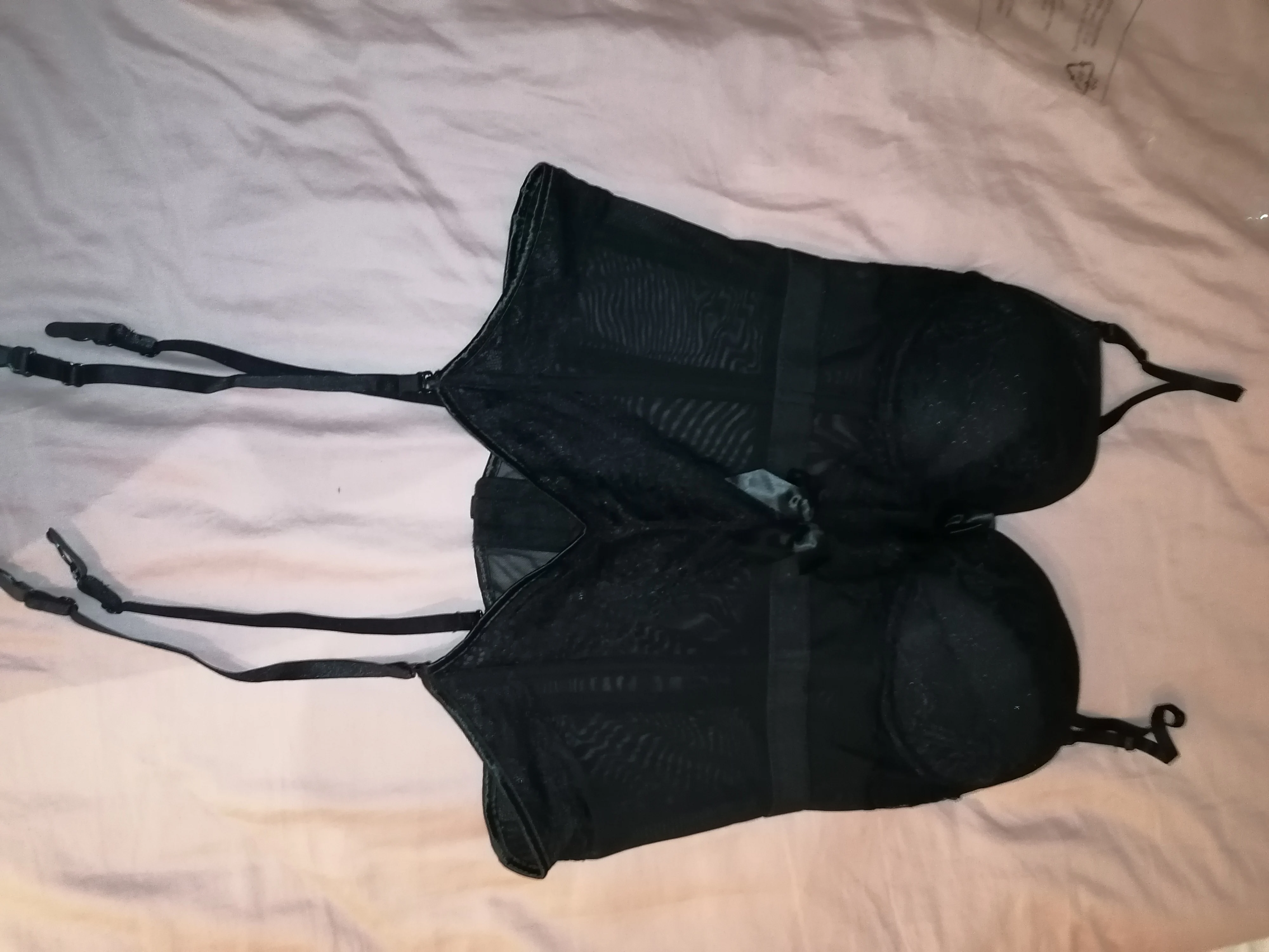 корсет прошит качественно, косточки вдоль силуэта пластиковые, гнутся, небольшой пушап в лифе, неплохо поддерживает грудь. трусики чисто номинальные, особенно для тех, у кого большой живот)) просто кусочек ткани)) в целом, корсетом довольна
