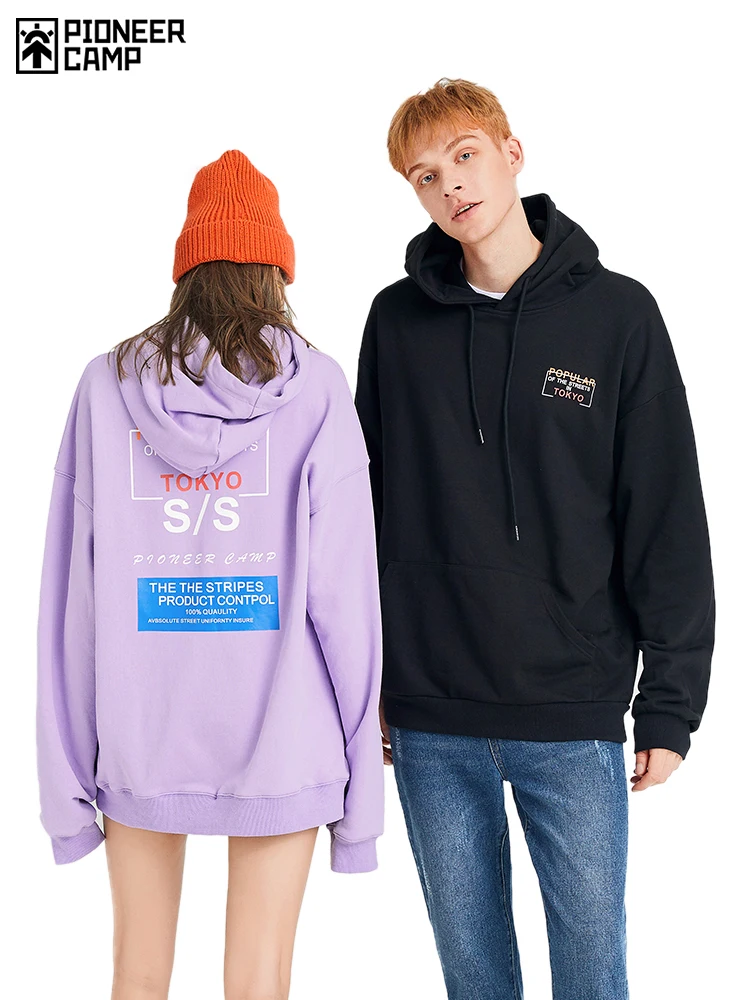 Толстовка с капюшоном Pioneer Camp, чернаяфиолетовая, для пар, для зимы, 2020