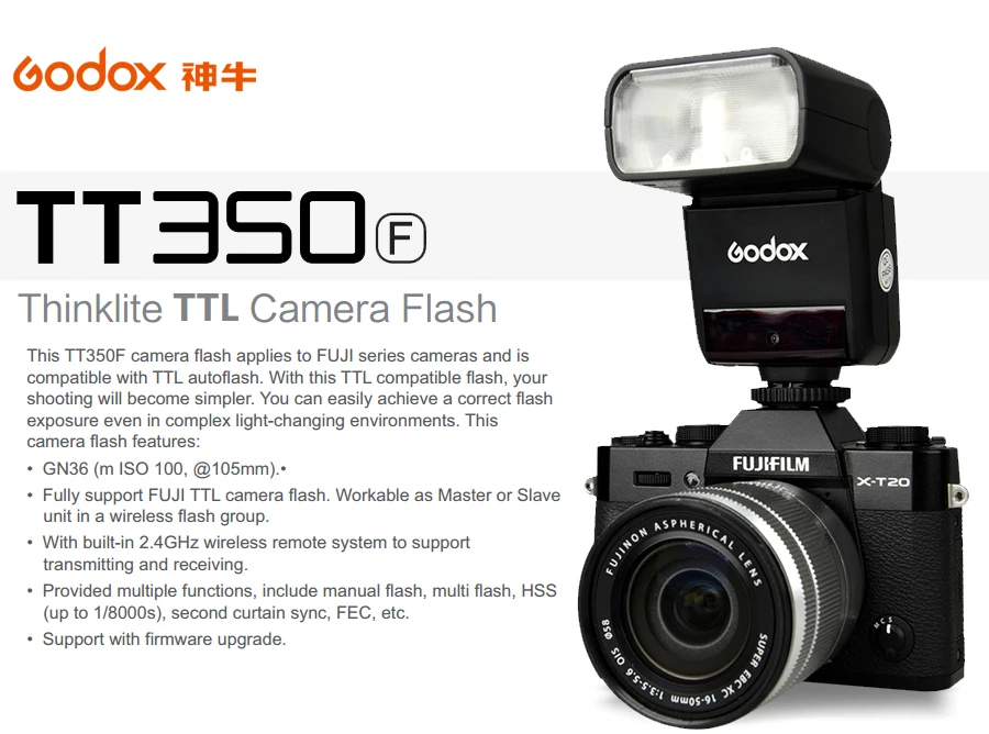 GODOX Mini TT350F Speedlite TTL HSS 2,4 ГГц 18000 s GN36 Flash карманные фонари TT350 + Xpro-F триггер для Fuji film fuji Cameras