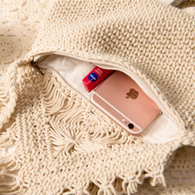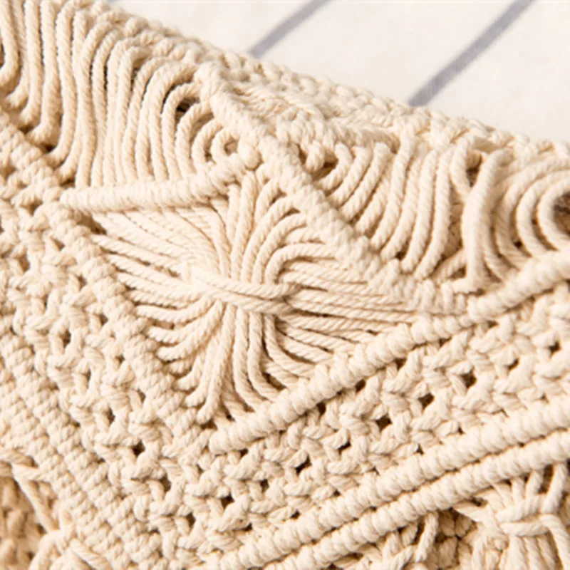 Простая плетеная пляжная соломенная Ретро сумка через плечо из хлопка с кисточками