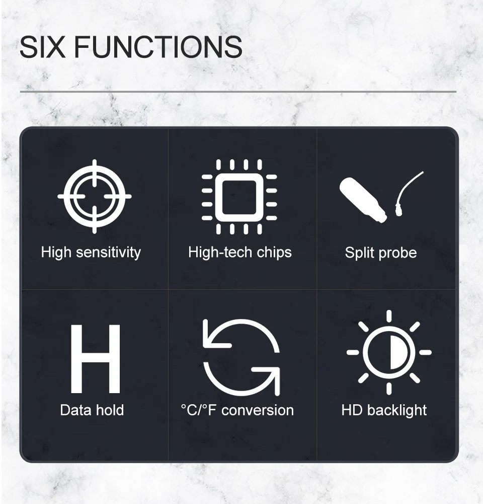 4. С температурными блоками в ℃ / ℉ (Переключаемый) и переключаемой подсветкой для удобного использования в темноте.