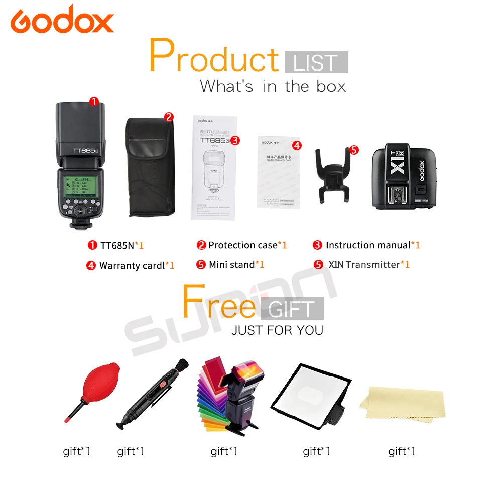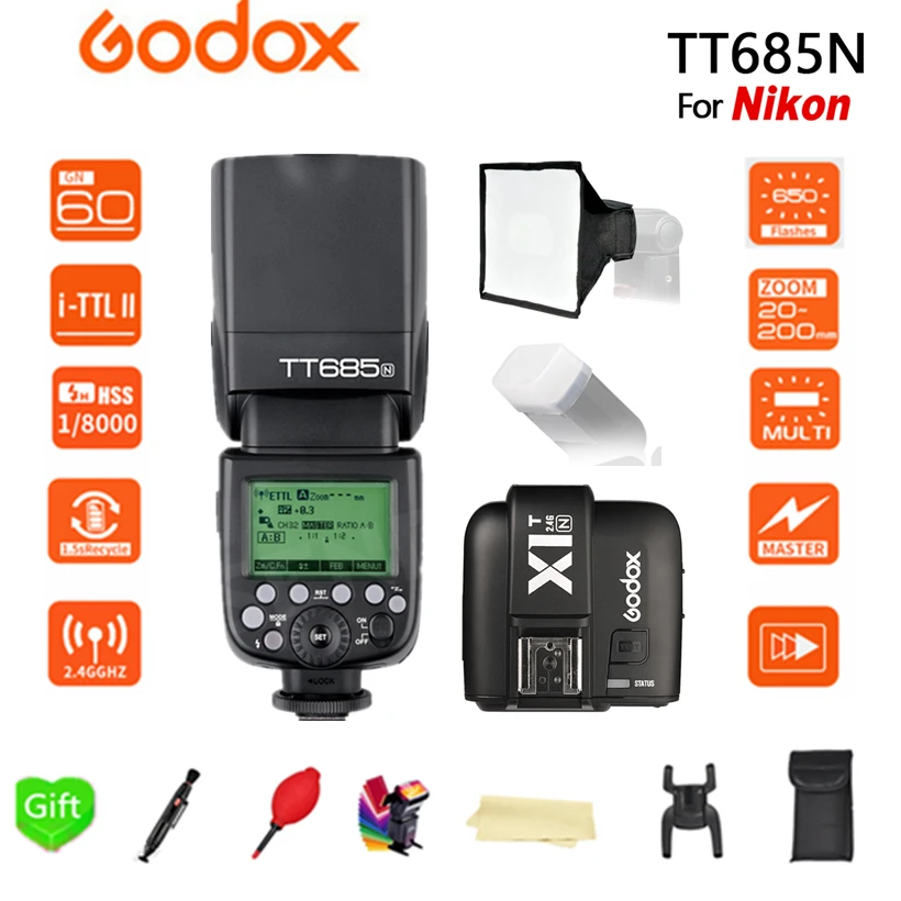 Godox TT685N 2,4G Вспышка для фотокамер Speedlite HSS 1/8000s i-TTL GN60 Беспроводной высокоскоростная вспышка + X1T-N вспышка триггера для Nikon D800 D700 D7100 D5200 D5100 D70S + подарок