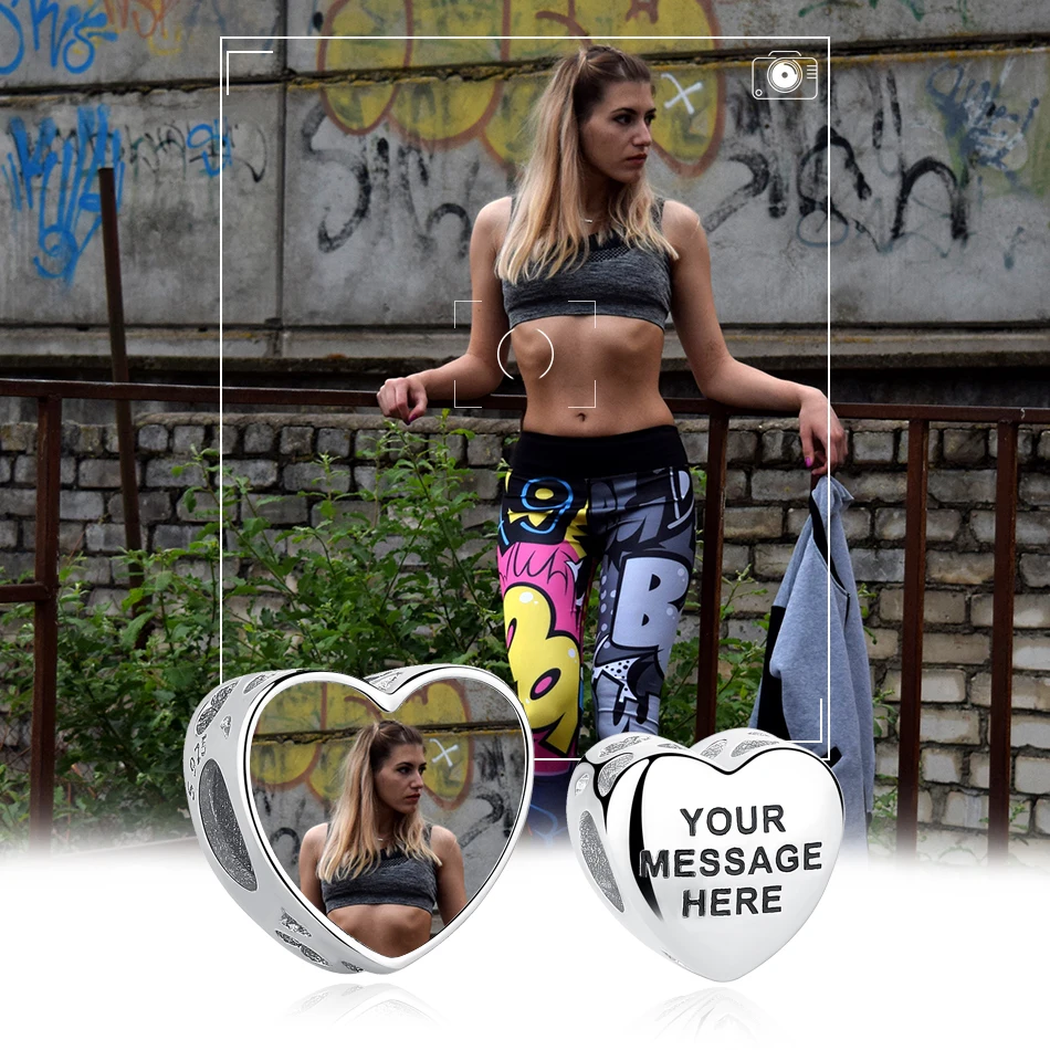 Подлинная серебряная подвеска в виде сердца с надписью и персонализированными фото-шармами, подходящими для оригинальных браслетов, сделай сам, Подарочная память для ювелирных изделий