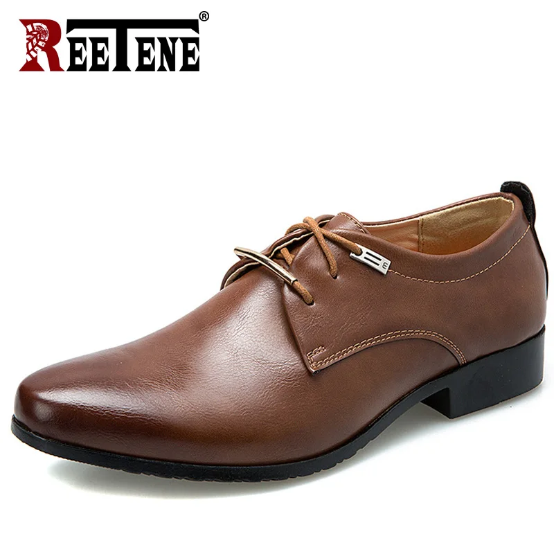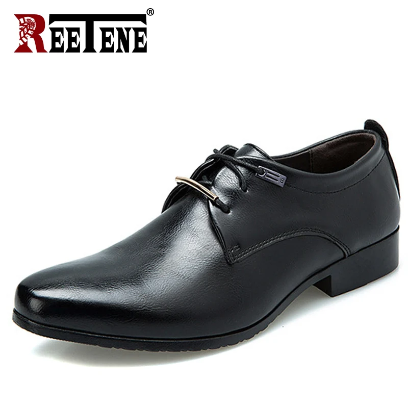 Мужские классические туфли REETENE, модная обувь из искусственной кожи, мужские брендовые деловые дышащие туфли