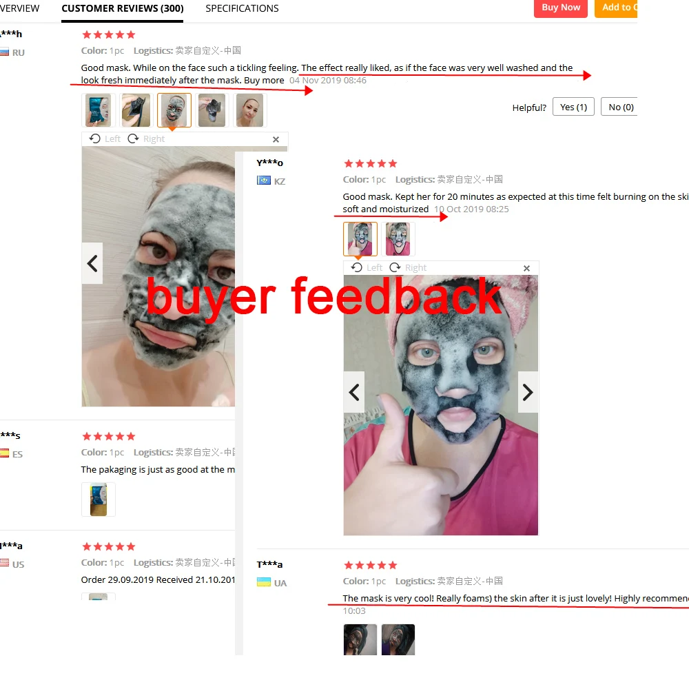 Изображения 1 шт аминокислотная пузырчатая маска Глубокая очистка пор бамбуковый уголь черная маска для лица отбеливающая маска для ухода за кожей лица