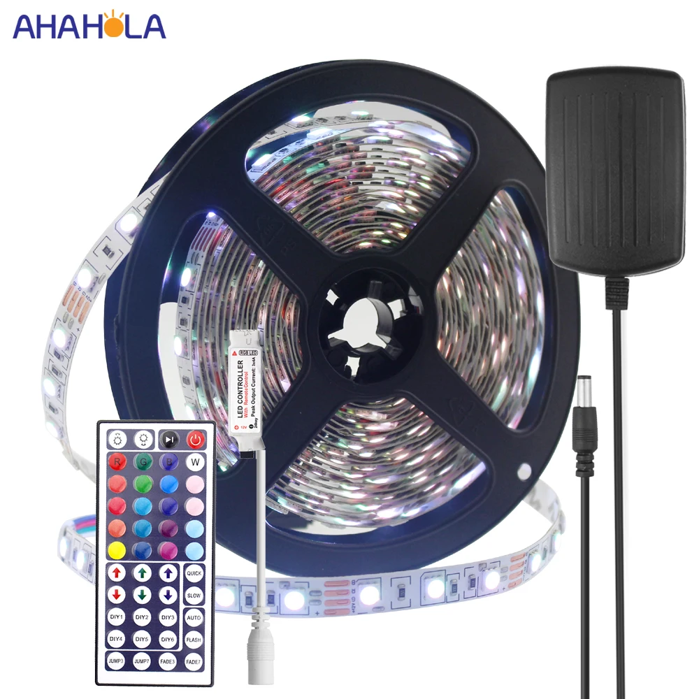 60 светодиодовм 5 м Водонепроницаемая Rgb Светодиодная лента 5050 2835 3528 SMD 12 В Диодная Лента светодиодная Rgb лента полосы светодиодные полосы 12 В постоянного тока комплект