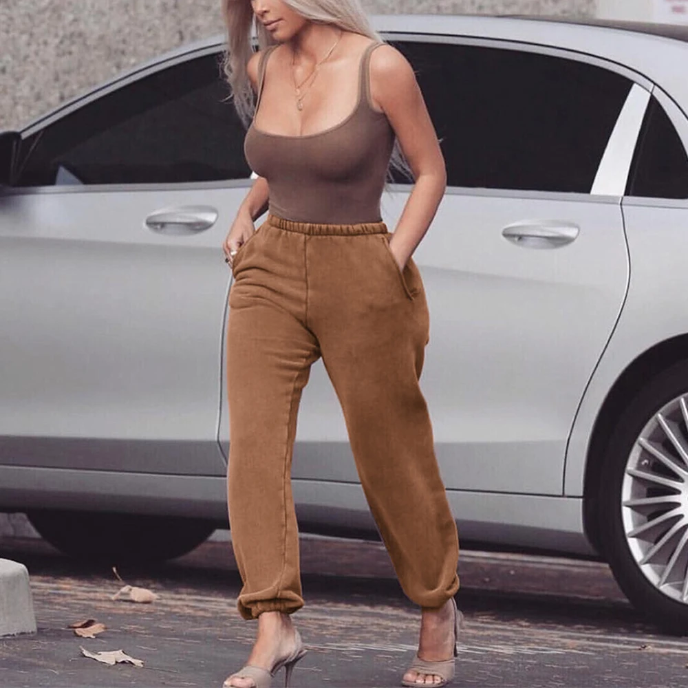 Осенняя одежда для детей, уличная одежда свободные штаны для женщин Эластичные зауженные уплотненные флисовые тренировочные штаны карман однотонные женские брюки 2019 джоггеры Mujer