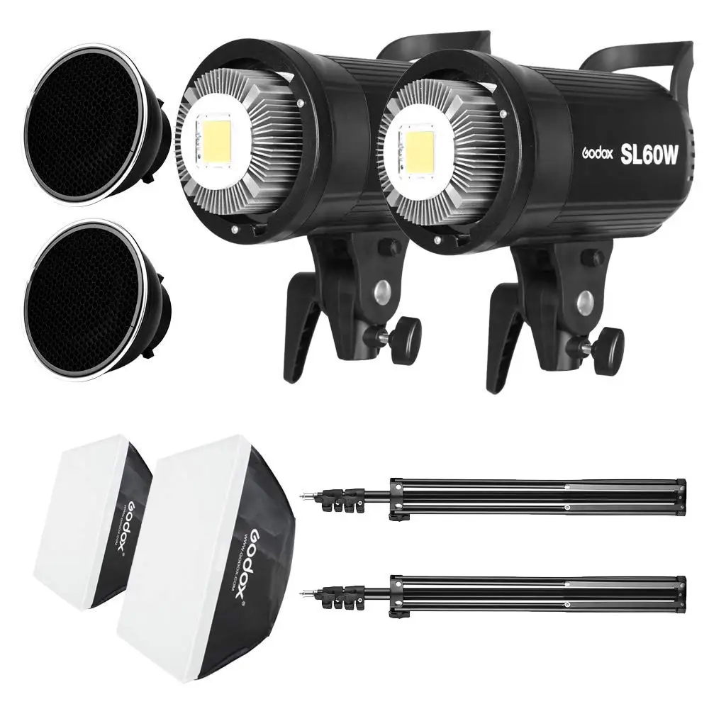 Студийный светодиодный светильник непрерывного действия Godox 2 * SL-60W 60Ws 5600K для фото-и видеосъемки + 2*1,8 м осветительная стойка + 2*60x60 см набор светодиодных софтбоксветодиодный