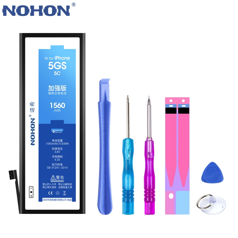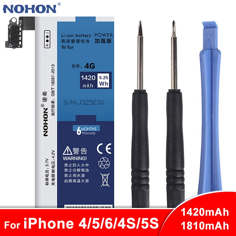 Аккумулятор NOHON для Apple iPhone 4, 5, 6, 4S, 5S, 5C, литий-полимерный, мобильный телефон, с инструментами в комплекте